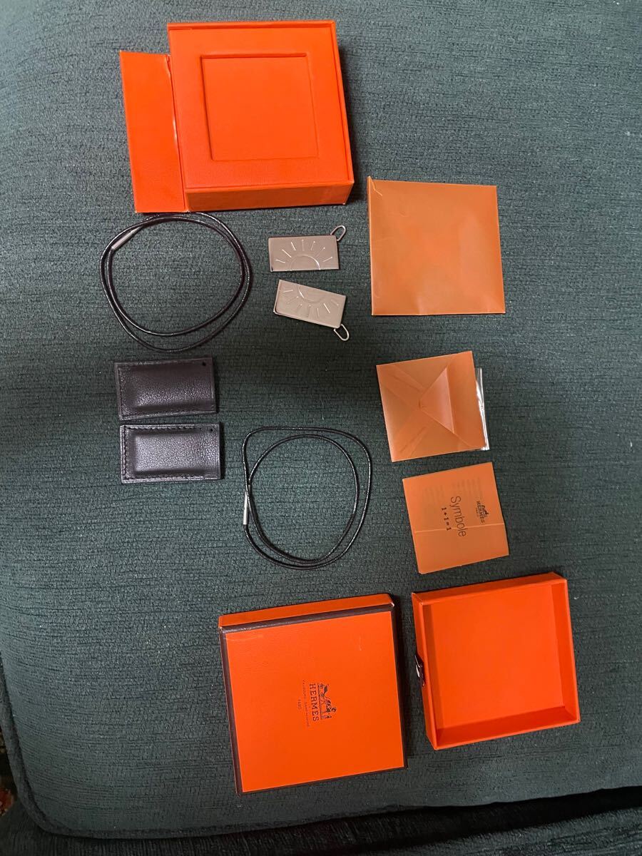 エルメスペアーペンダントです。購入後未使用でますがチョウカーや本体を入れてある紙袋にシワがあります。画像判断ください。
