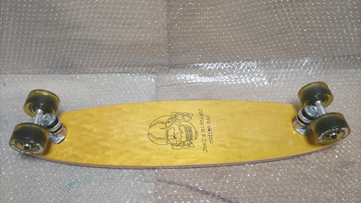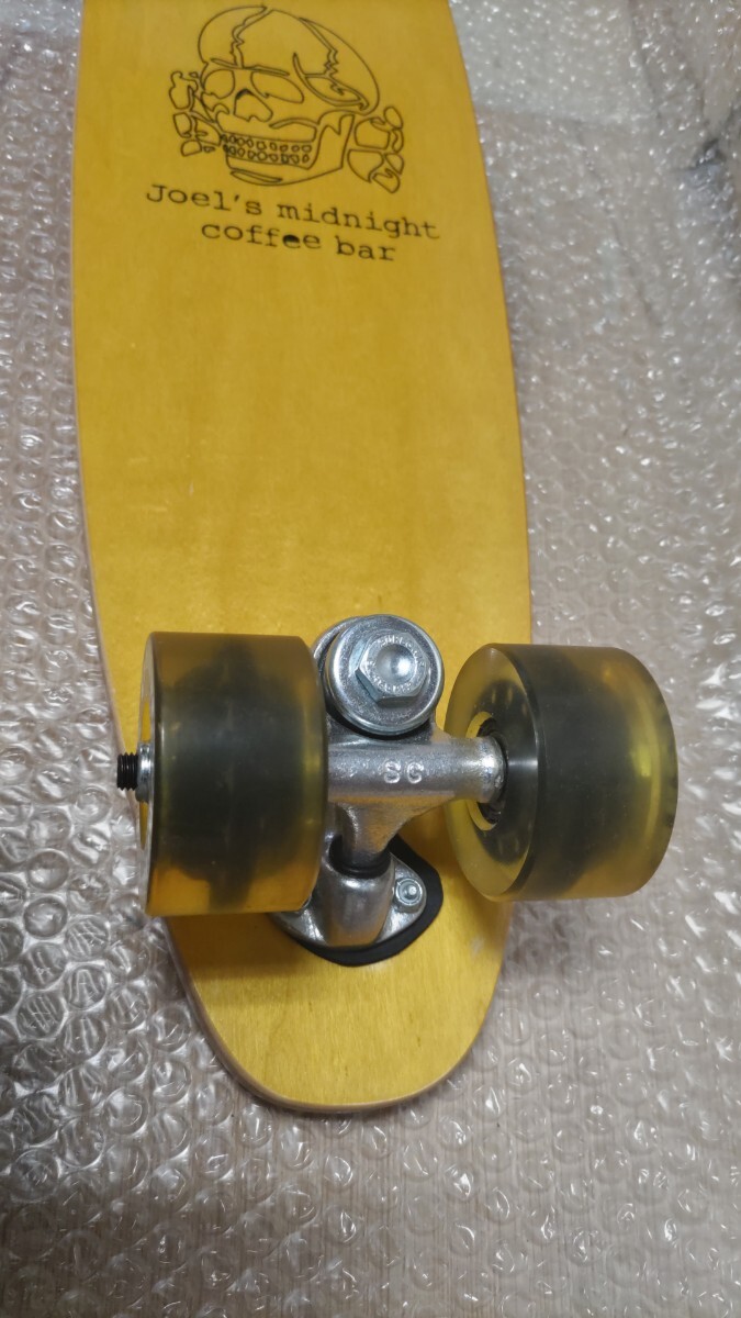 展示品Joel‘s midnight coffee barスケートボード、キャディラックウィール56ミリ78a、シュアグリップミニハンガートラック、70sスタイルになります。