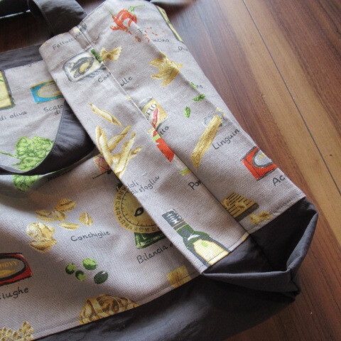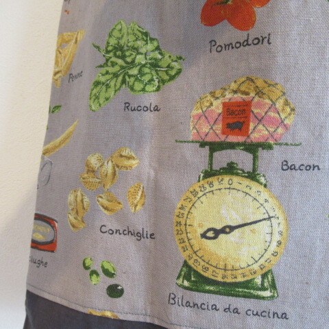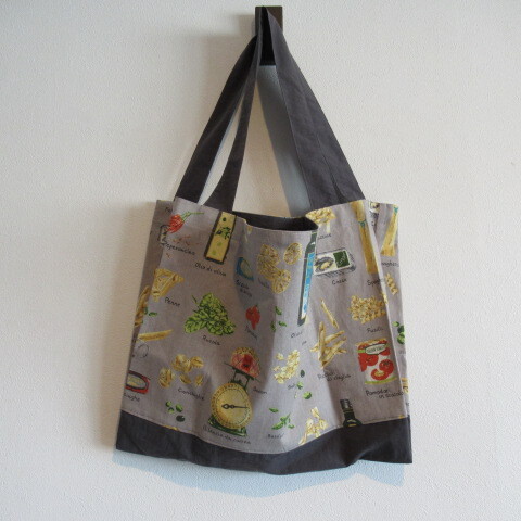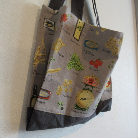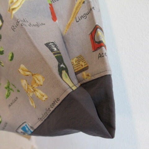 ・いろんな種類のパスタ、トマト缶、、、 おしゃれなカフェみたいな柄です。