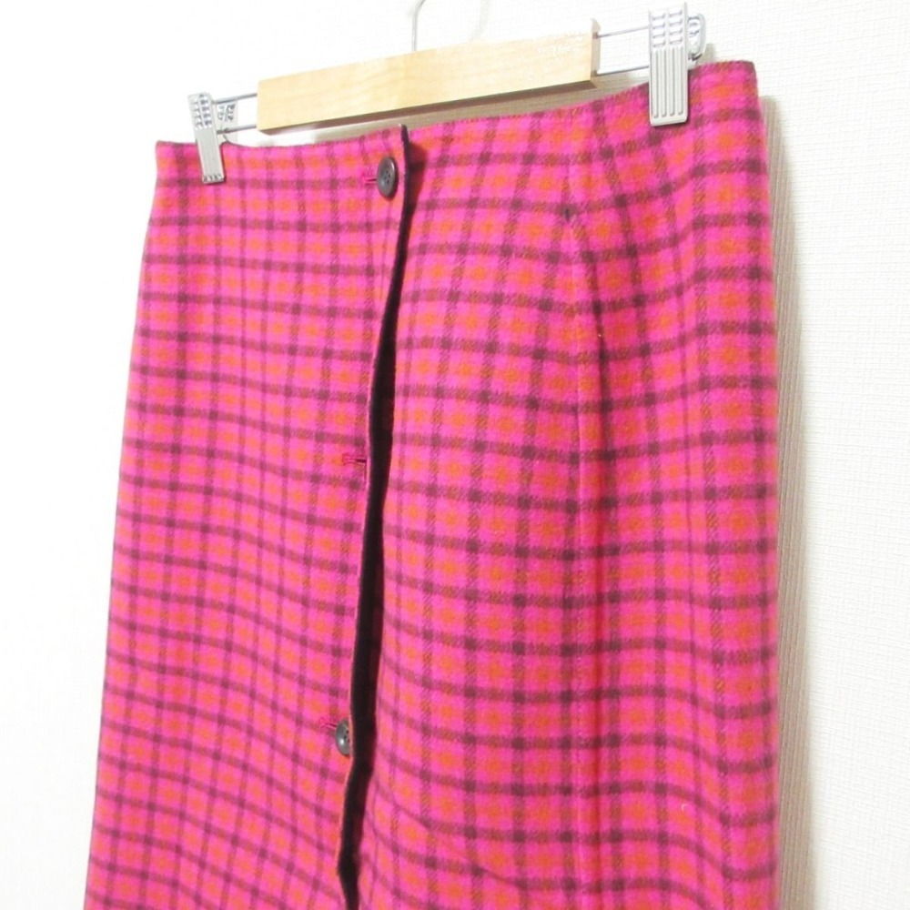 商品名:美品 IENA イエナ チェック柄 フロントボタン ロング ウール タイトスカート 36 ピンク
