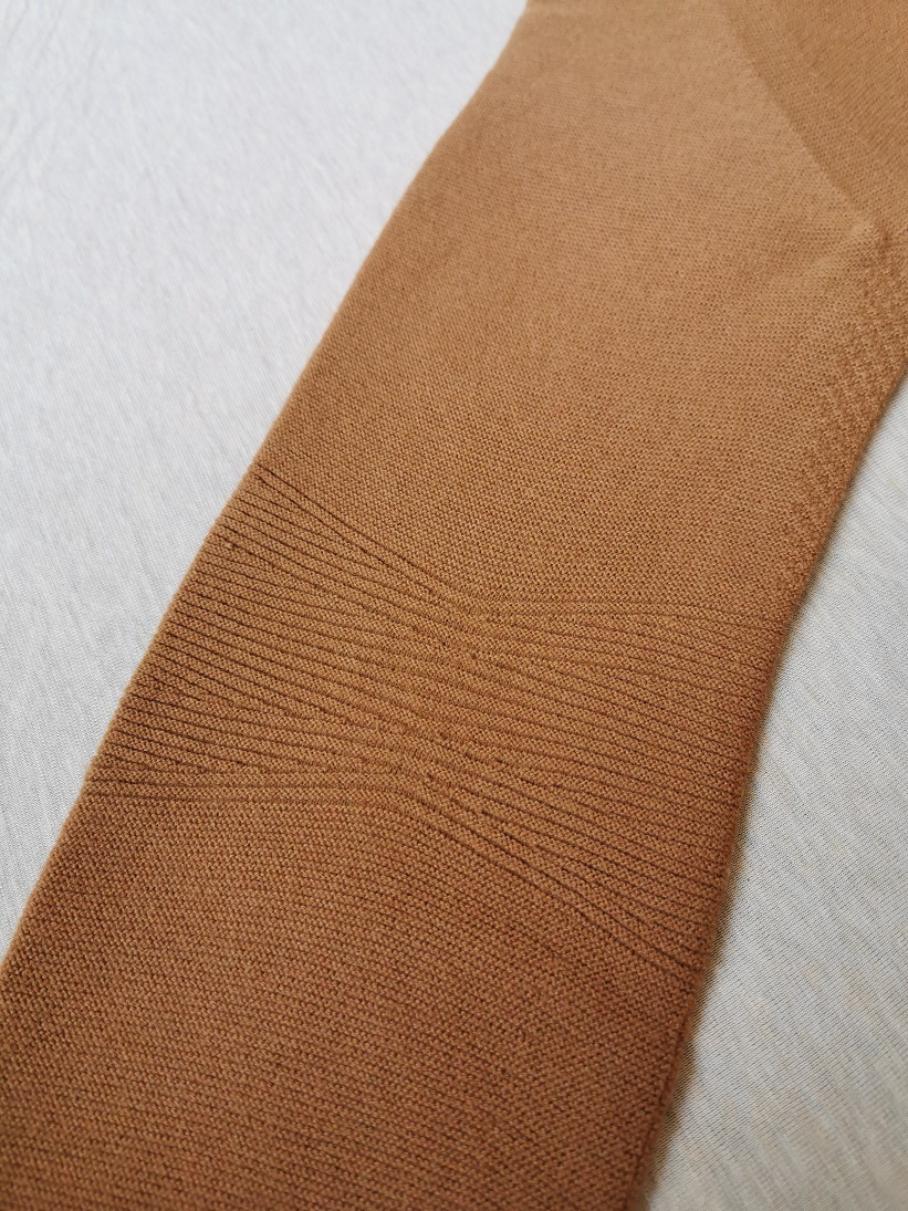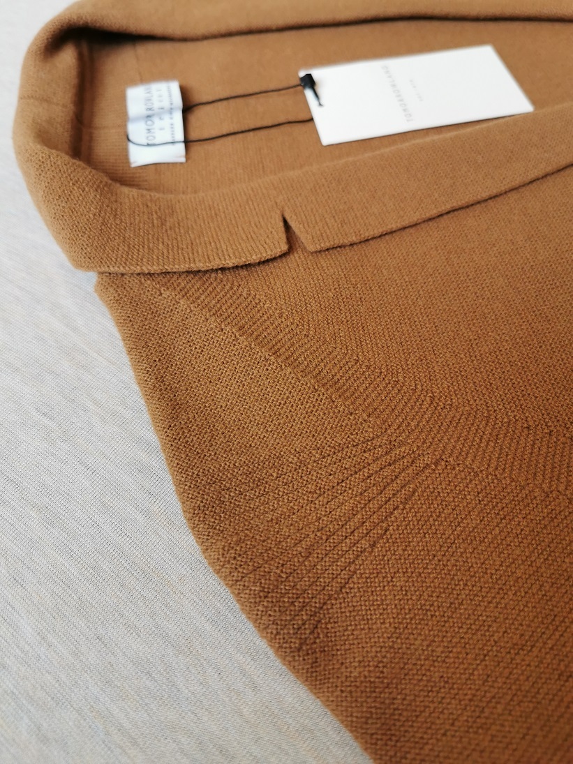 カラーは43、素材はTomorrowlandが得意とするウール78%、ナイロン22%の混紡生地を使用しているのでボディは肌触りがよく、伸びダレのないコンパクトなシルエットを実現しています。