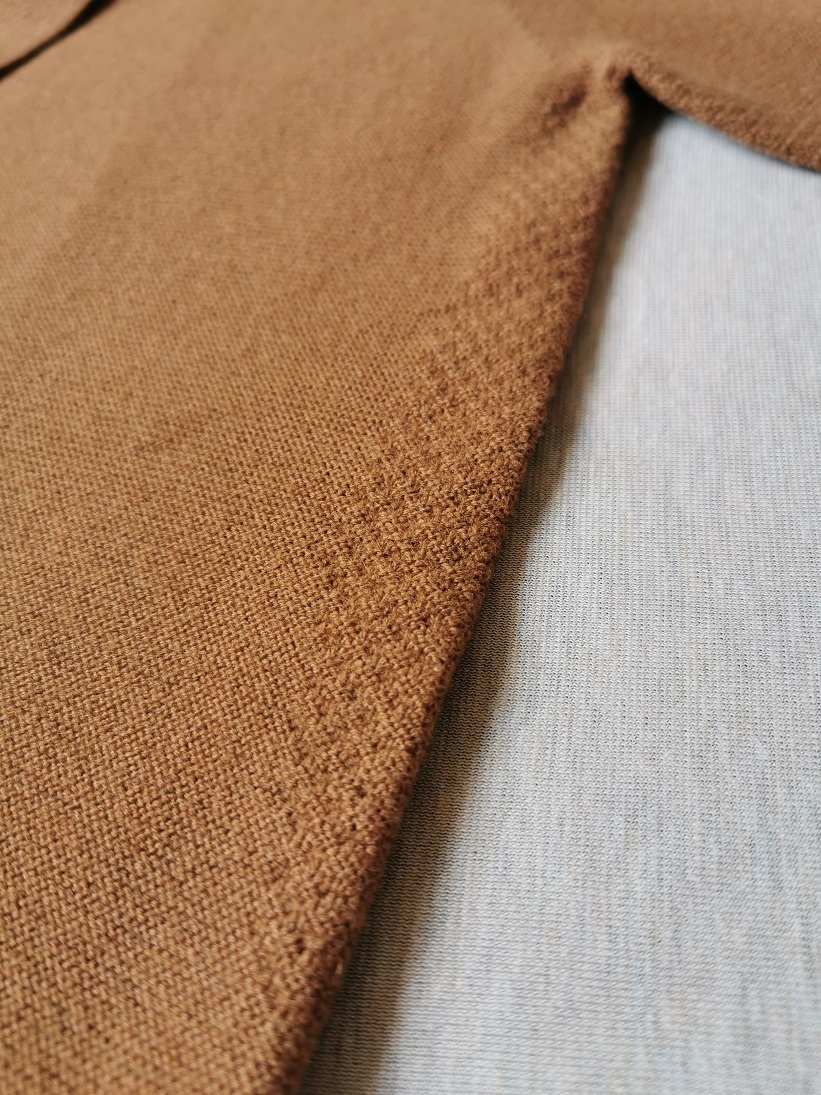ポケットは約5cm幅のフラップが付けられており、ニットながらも本格的なジャケットの仕様となっております(画像参照)。
