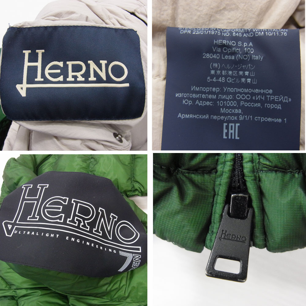 定価10万円以上●HERNO ヘルノ ダウン ジャケット リバーシブル フーデッド メンズ Lサイズ 超軽量 正規品 グリーン 高級