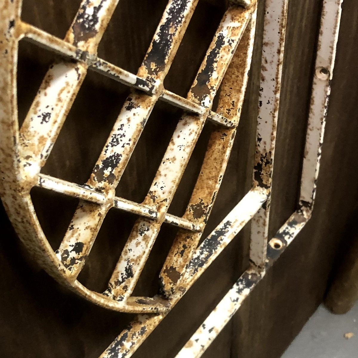 サビ・歪み・溶接不良・モチーフ抜け・側面にビス穴がございます。