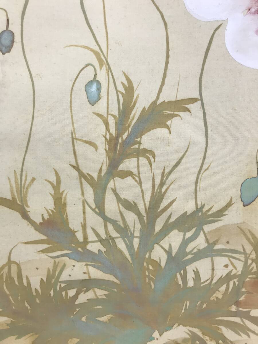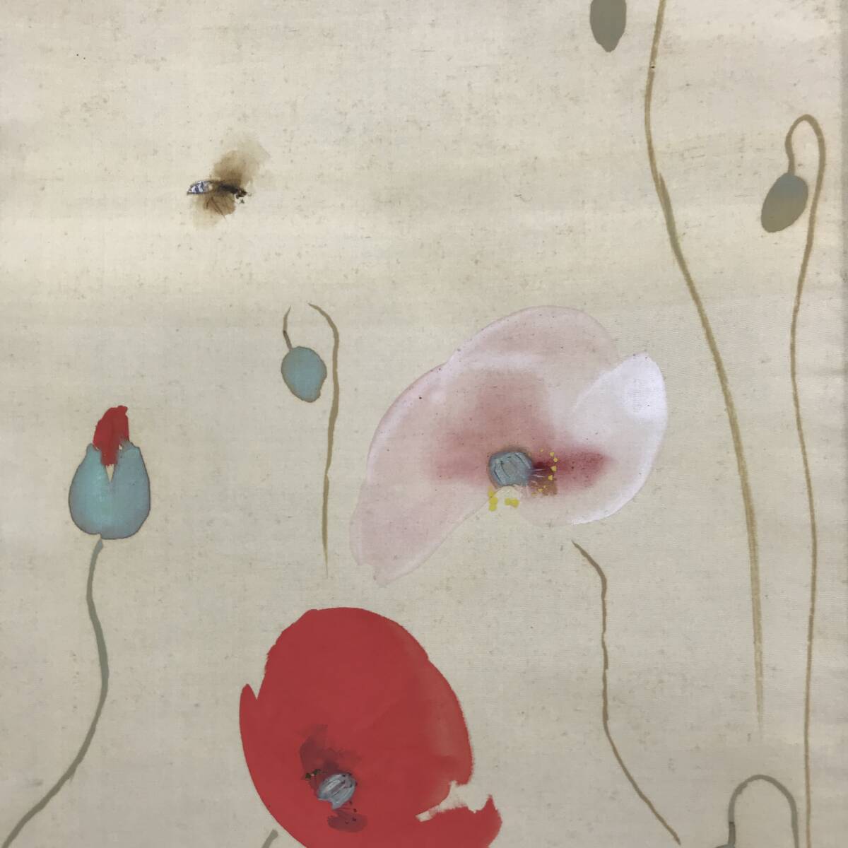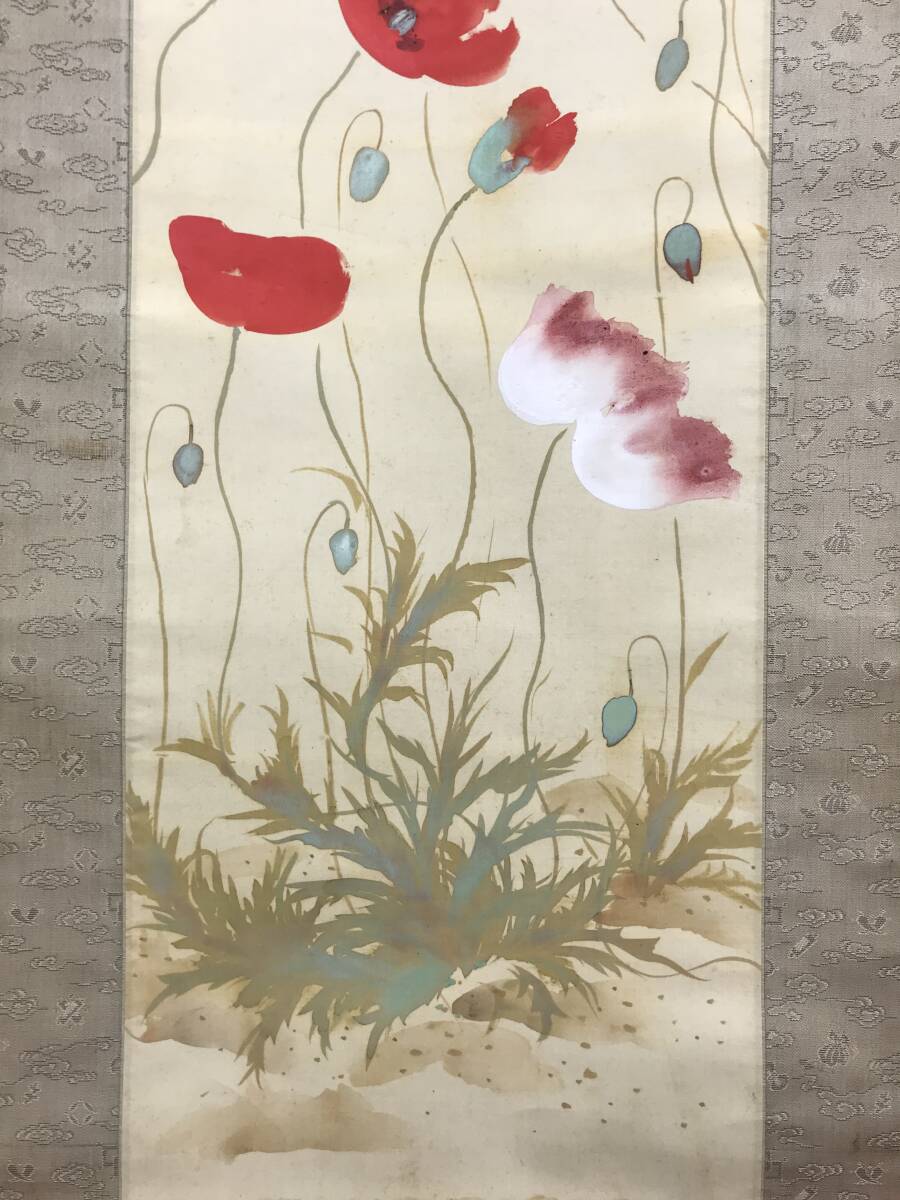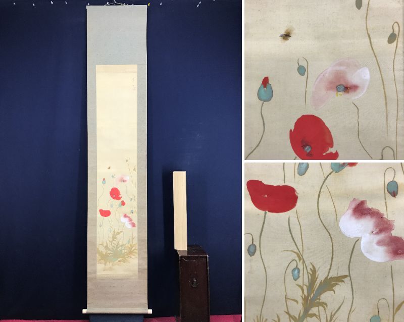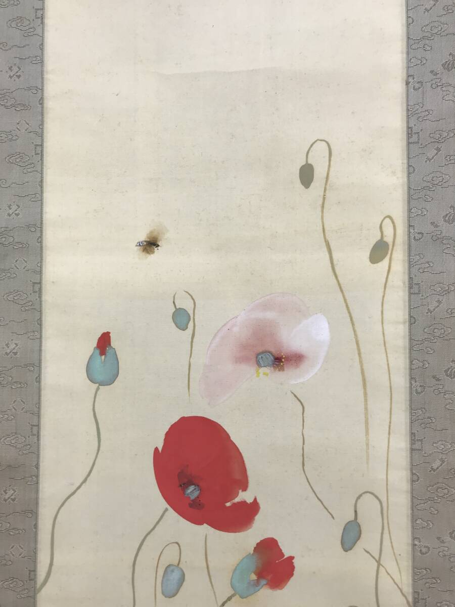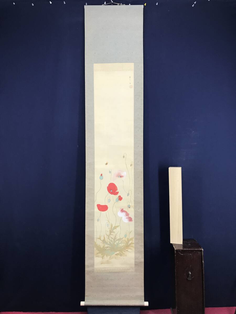真作/北上聖牛/芥子図/ケシ/花図/5月の花/蜜蜂/掛軸☆宝船☆AI-19