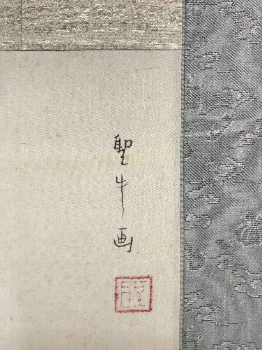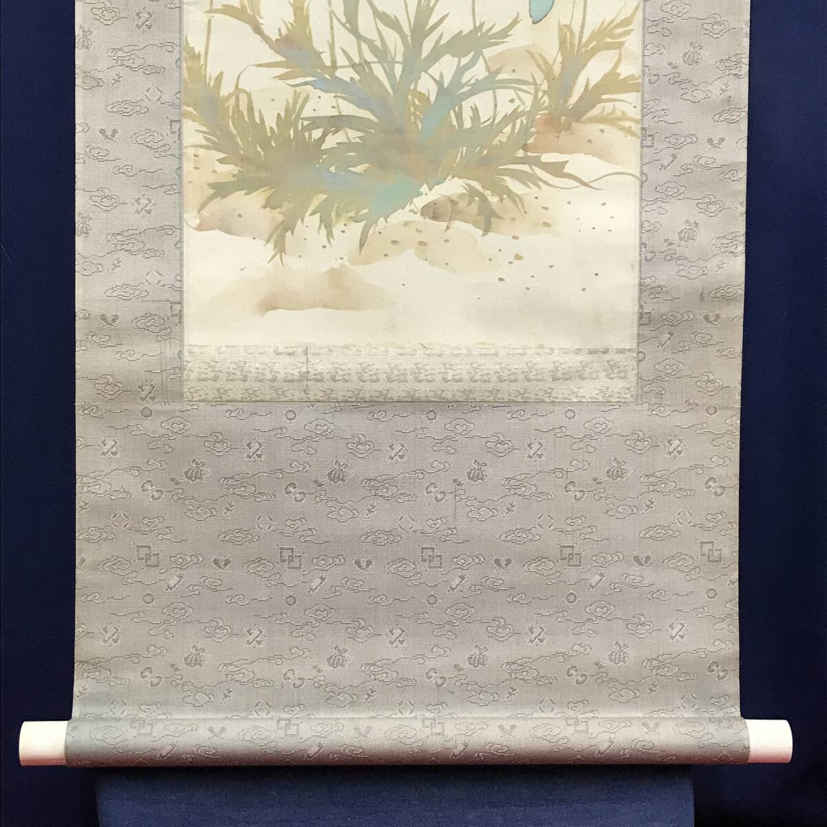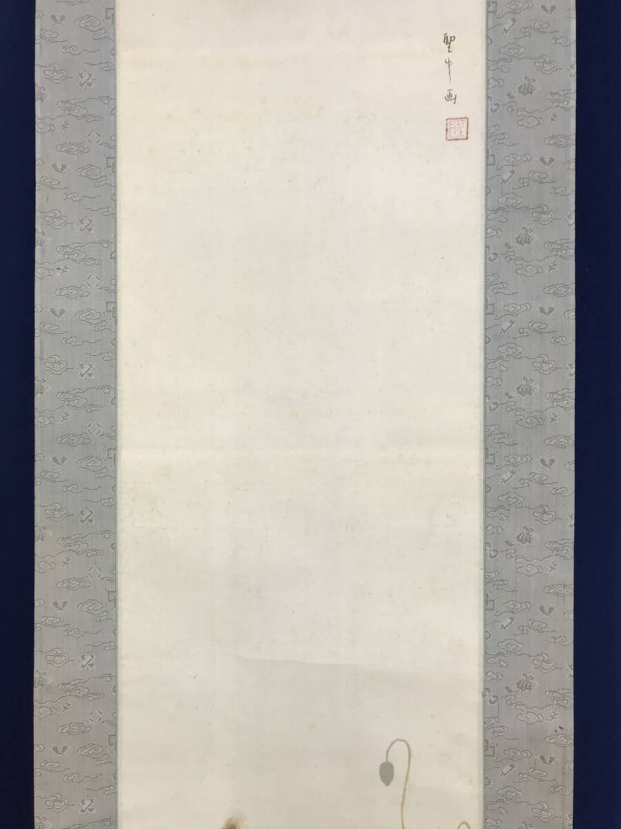 【作品状態】 本紙は絹本肉筆です。本紙は薄汚れ、全体に多少の汚れシミ、糊シミあります。表装は概ね良好です。