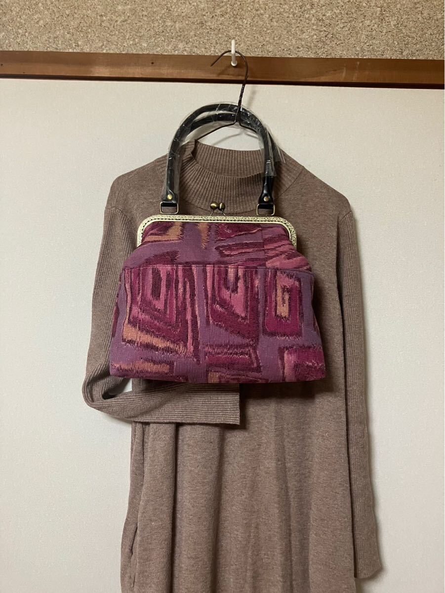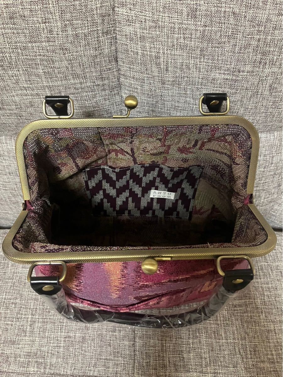 #アンズルーム#がま口バッグ#ハンドバック#容量大#長財布OK#水筒OK#紫#外ポケット付き#個性派
