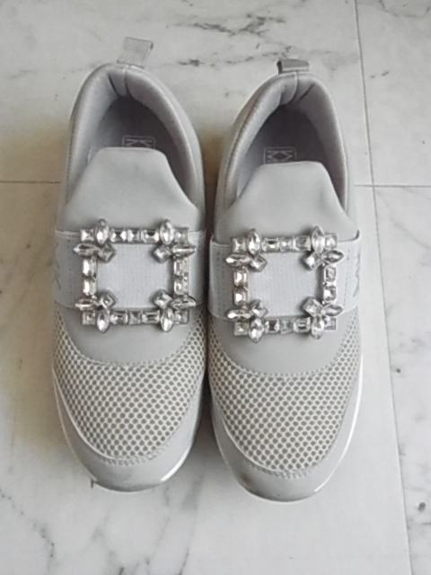 MK ミッシェルクラン キラキラビジューストーンが輝いて可愛い印象 スカイグレートーン サイズ23センチ MICHELEKLEIN 靴 シューズ