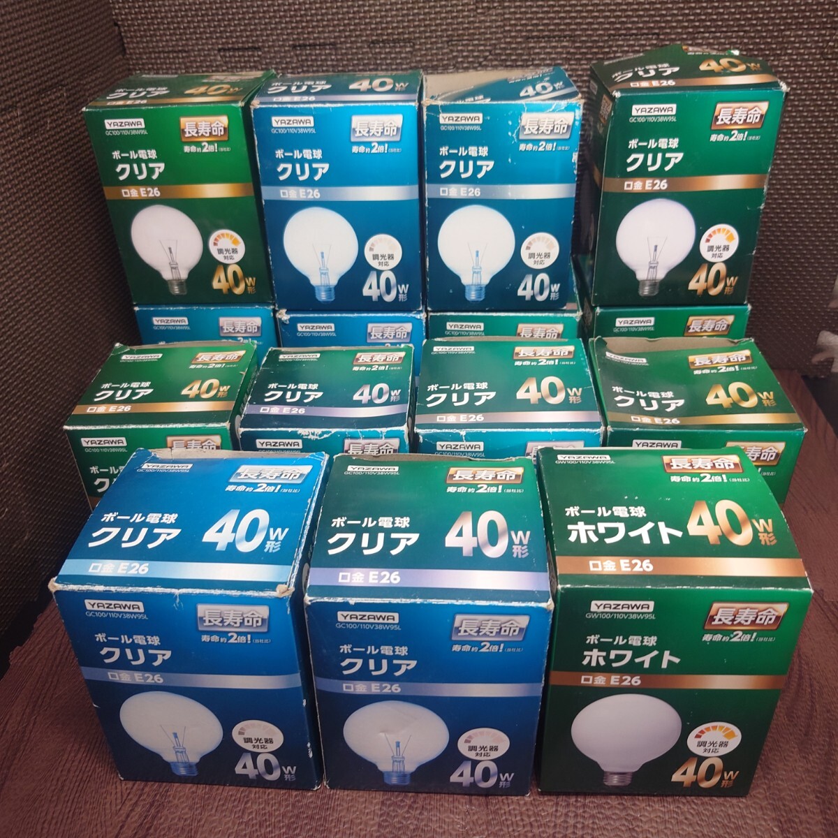 YAZAWA ボール電球 まとめ 40W形クリア(GC100/110V38W95L)X14個 40W形ホワイト(GW100/110V38W95L)X1個 【管理No.2674】