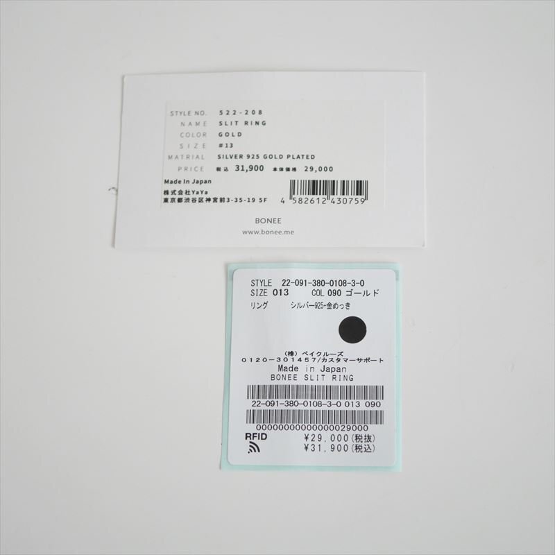 継続販売品 / BONEE ボーニー / SLIT RING リング 指輪 13号 / 2411-0863