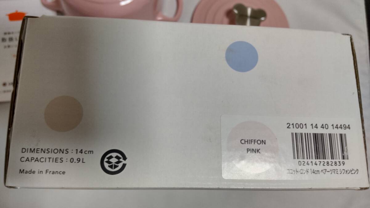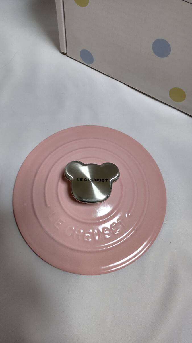 ルクルーゼ ココットロンド14㎝ ベアーつまみ シフォンピンク