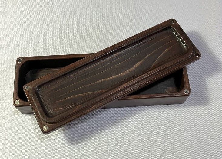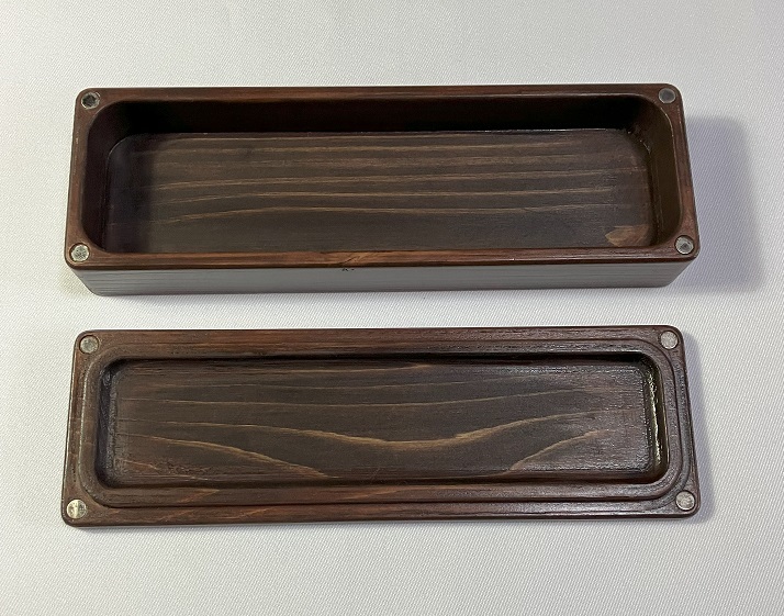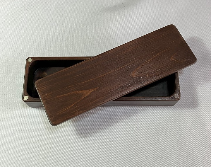 【檜坂木工】☆☆ 木製ペンケース 檜(ヒノキ)材 削り出し ダークブラウン 高級感 おしゃれ お洒落 ☆☆ 【希少・現品のみ】