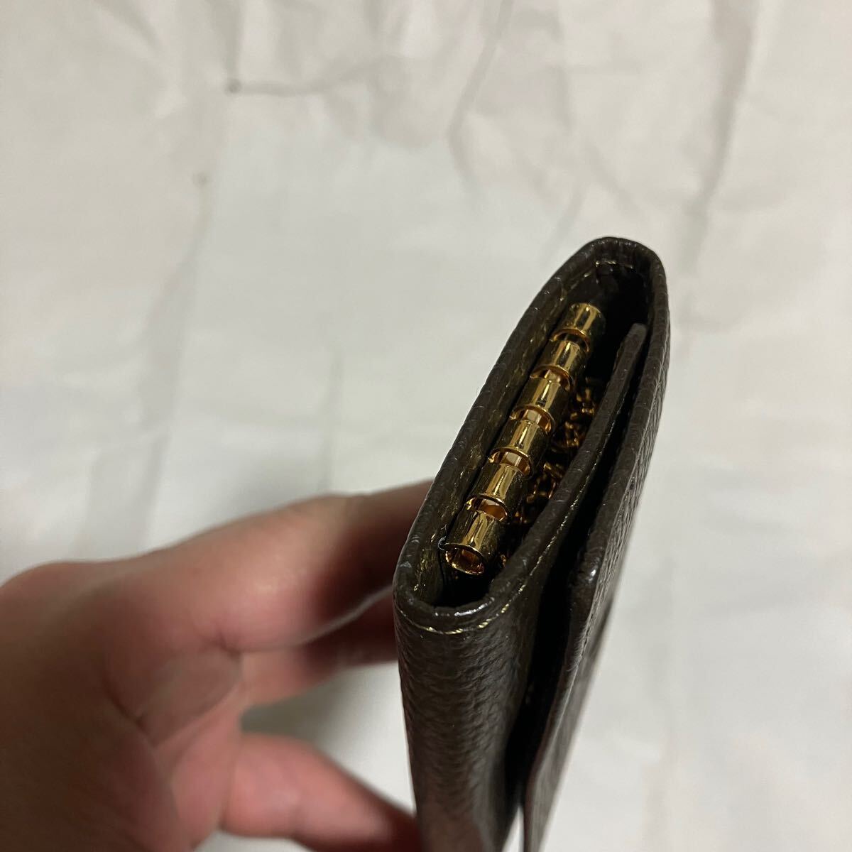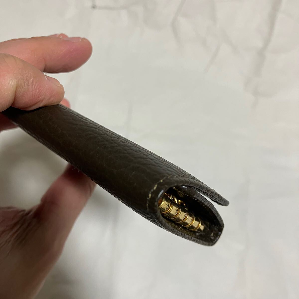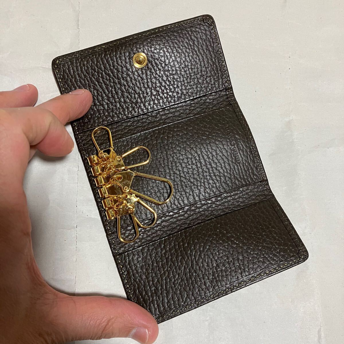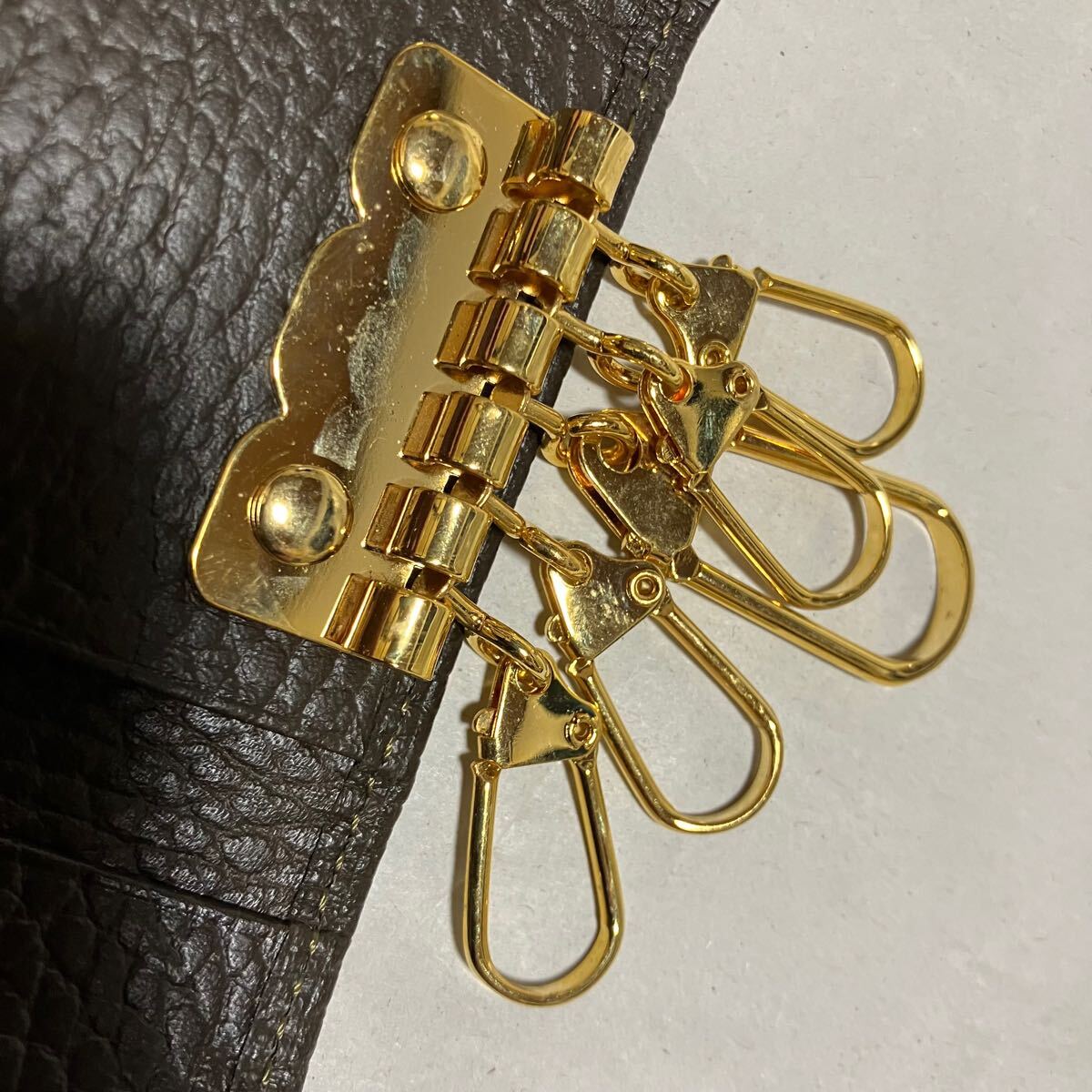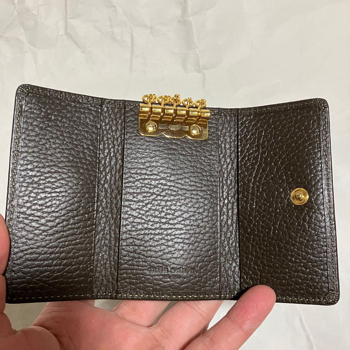ミラショーンのレザーキーケースです♪しっかりした素材で柔らかさもあり、質感が良いです☆ダークブラウン系の色合いと、ゴールド金具の相性も◯また、場所を取らないコンパクトなサイズ感です★