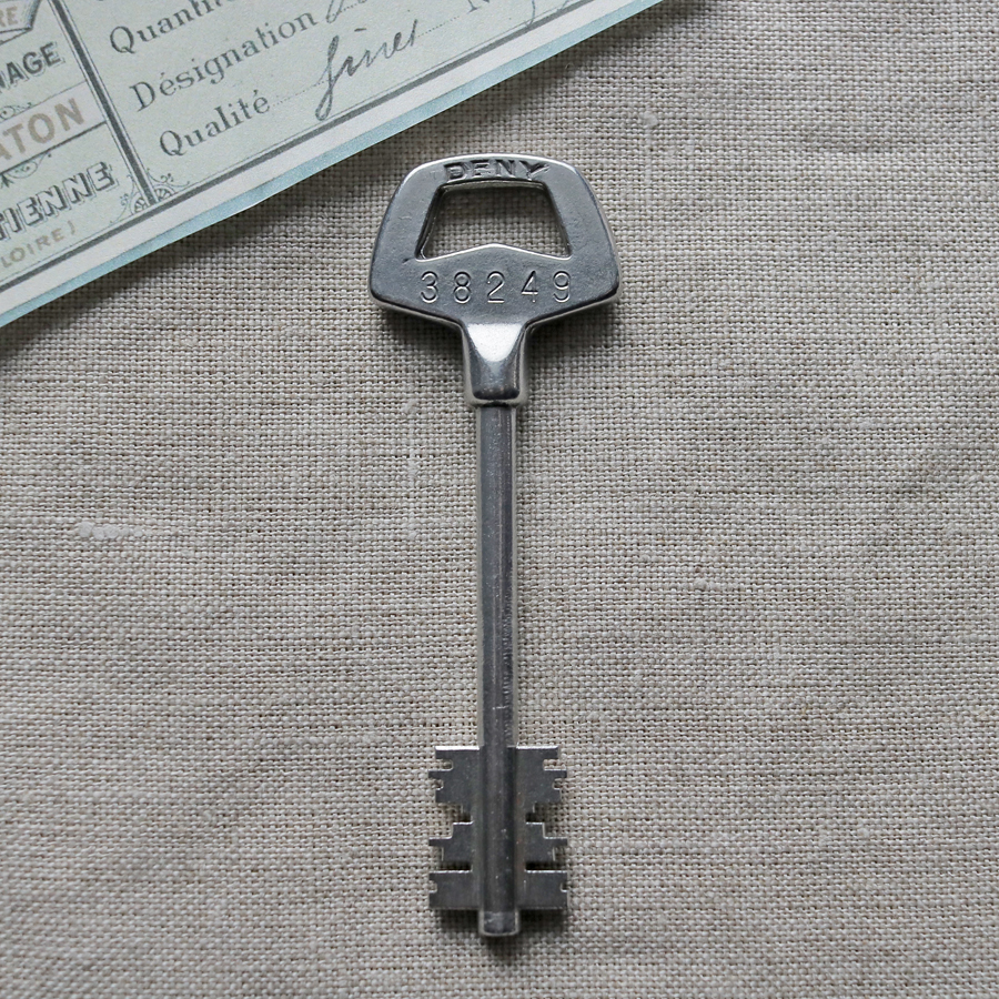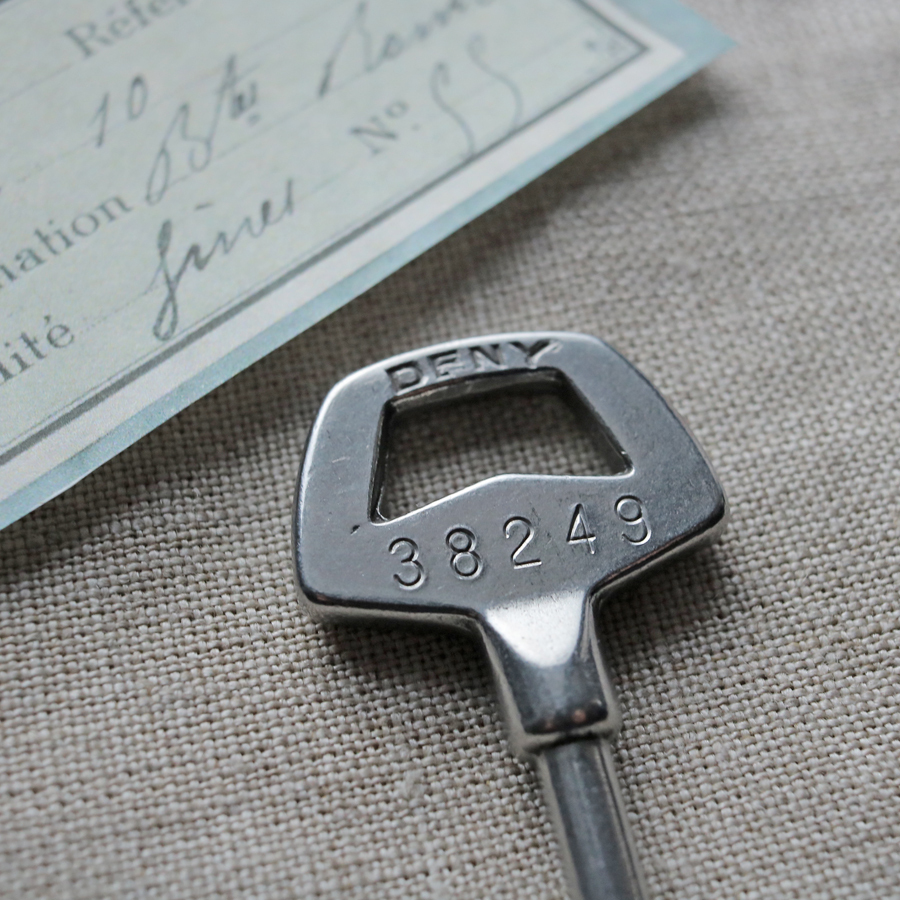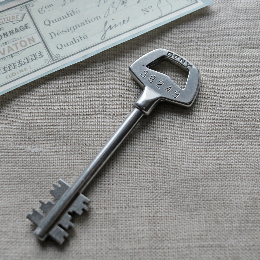 【刻印 表 裏 DENY】シルバー 1940年代 フランス アンティーク 鍵 鉄製 11-C/アンティークキー カギ key 雑貨 かぎ