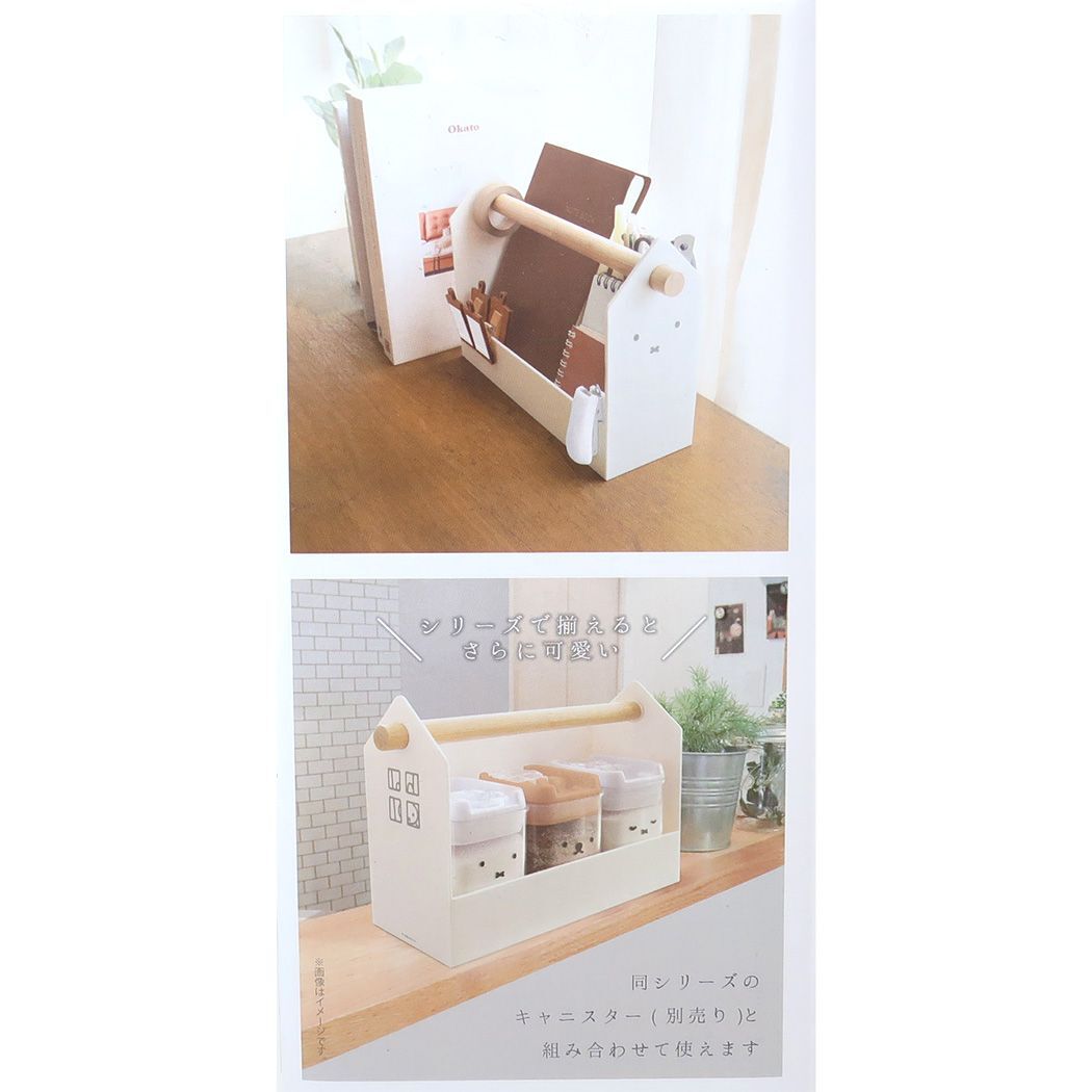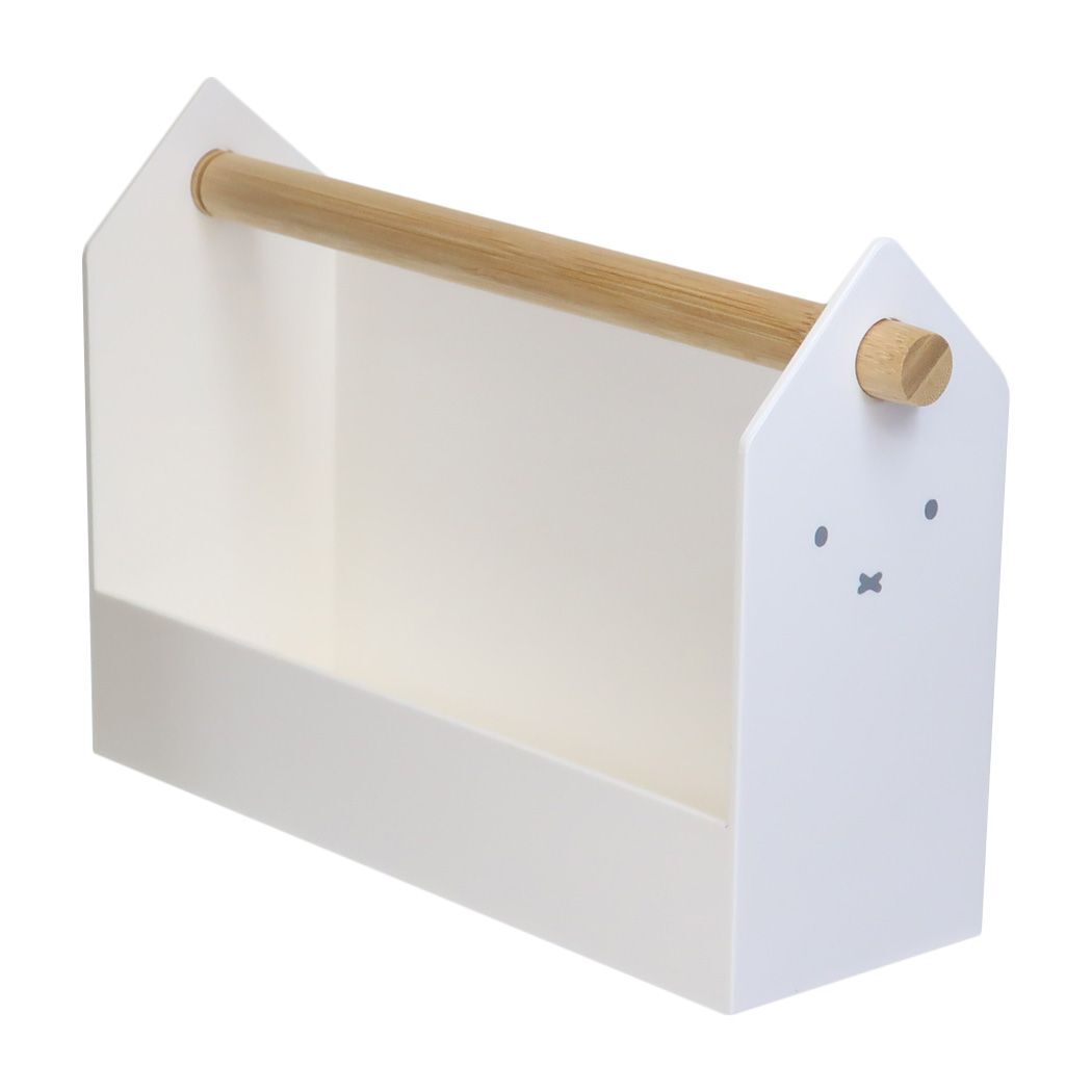 ミッフィーのかわいい雑貨シリーズ ディックブルーナの人気絵本[miffy/ミッフィーちゃん]のキュートなキッチン雑貨シリーズ散らかりがちなキッチンやリビングの小物をすっきり収納かわいらしくディスプレイできます。持ち手付きで移動もラクラク、使い勝手もばっちり シンプルなデザインでインテリアに馴染みやすいデザインなっています。サイズ:270x177x83mm(持ち手含む)素材:本体[ポリスチレン]/持ち手[天然木(竹)]耐熱温度:約70℃耐冷温度:約-10℃
