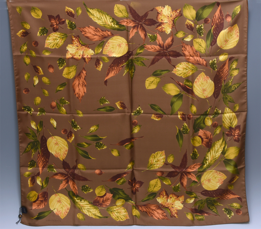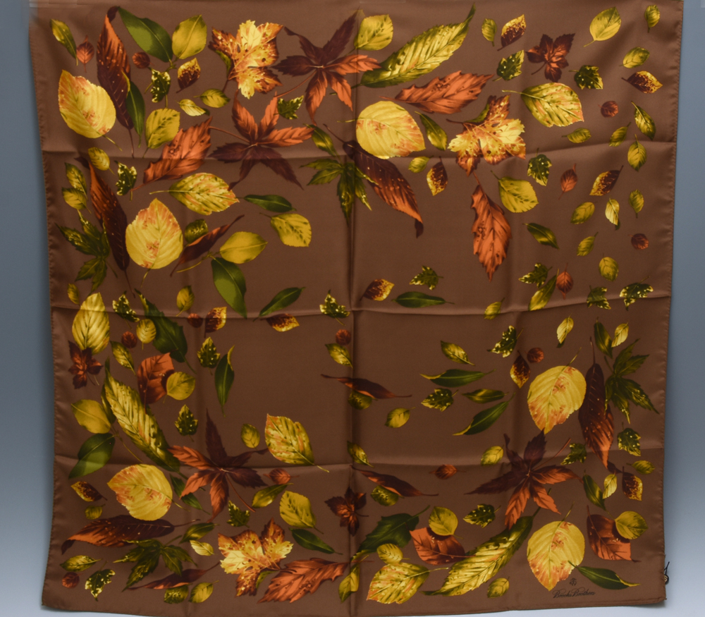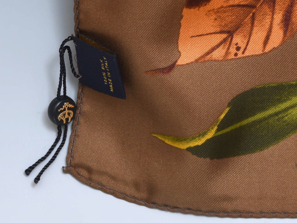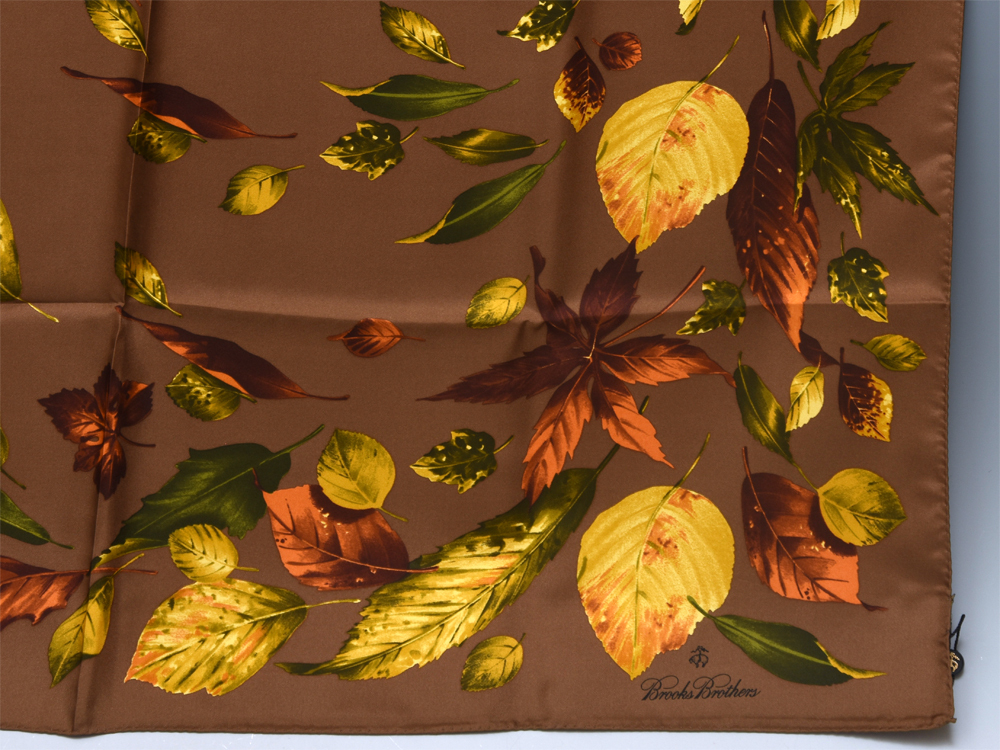 Brooks Brothers Japan ブルックス ブラザーズ イタリア製 シルクスカーフです。 ブラウンの色味が渋く落ち着いた印象を与えてくれます。 モチーフは枯葉などです。 元箱付のキズ欠点ない未使用品です。 ※撮影の際に生じた写り込みなどがございます。 ご理解の程よろしくお願い致します。 |