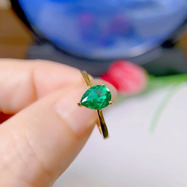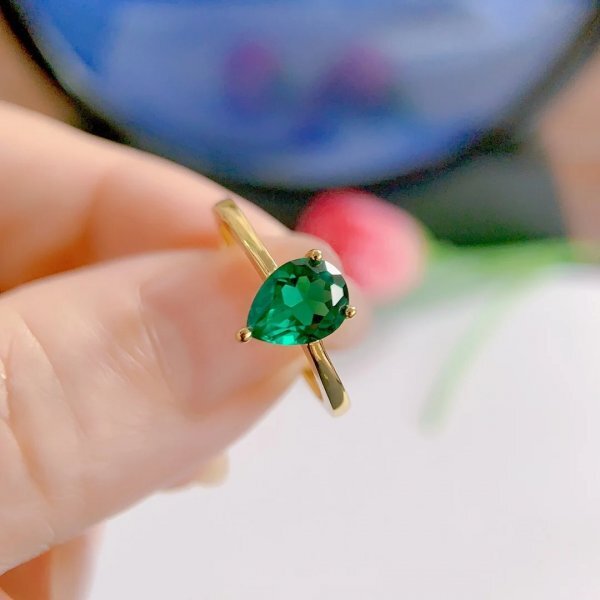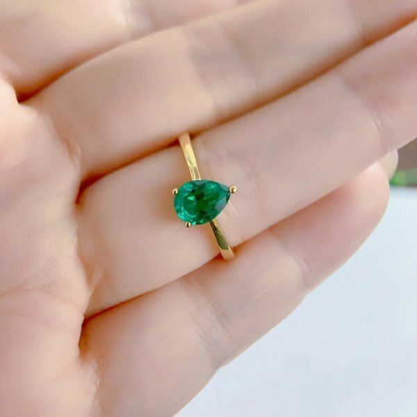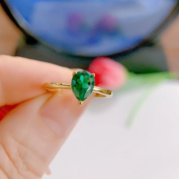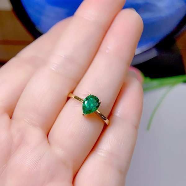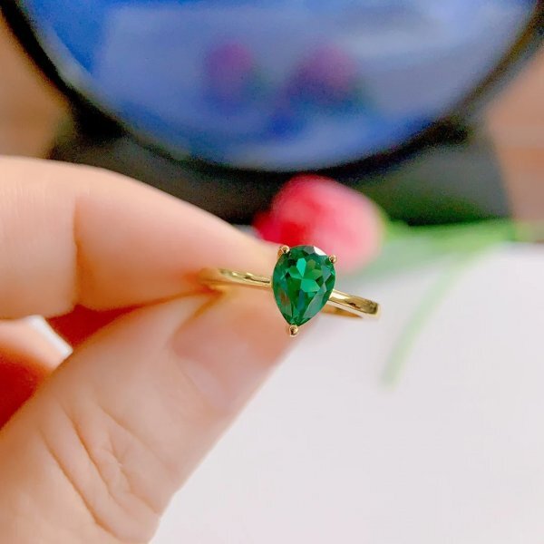 天然エメラルドリング、6×8mm、シルバー925、高級バースデーギフト