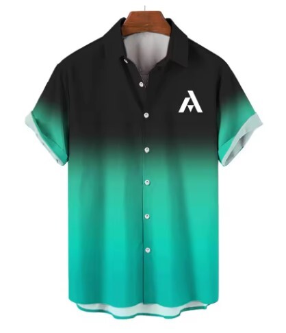 メンズ半袖Tシャツ、グラデーションカラーデザイン、カジュアル、夏服、カラー:エメラルド