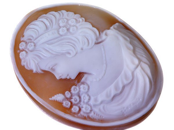 綺麗な女性を繊細に彫刻で演出した、素晴らしい高級シェルカメオルースです!