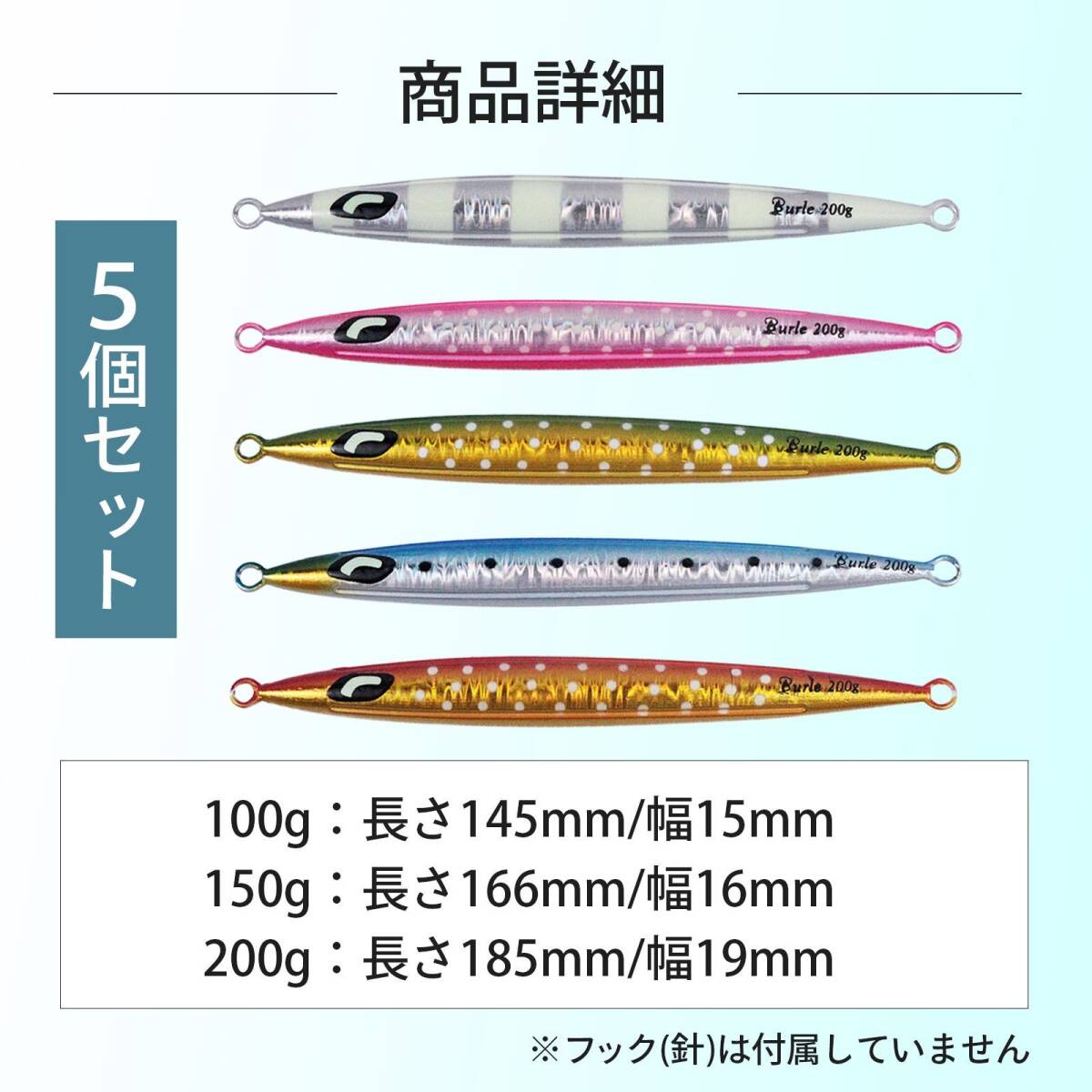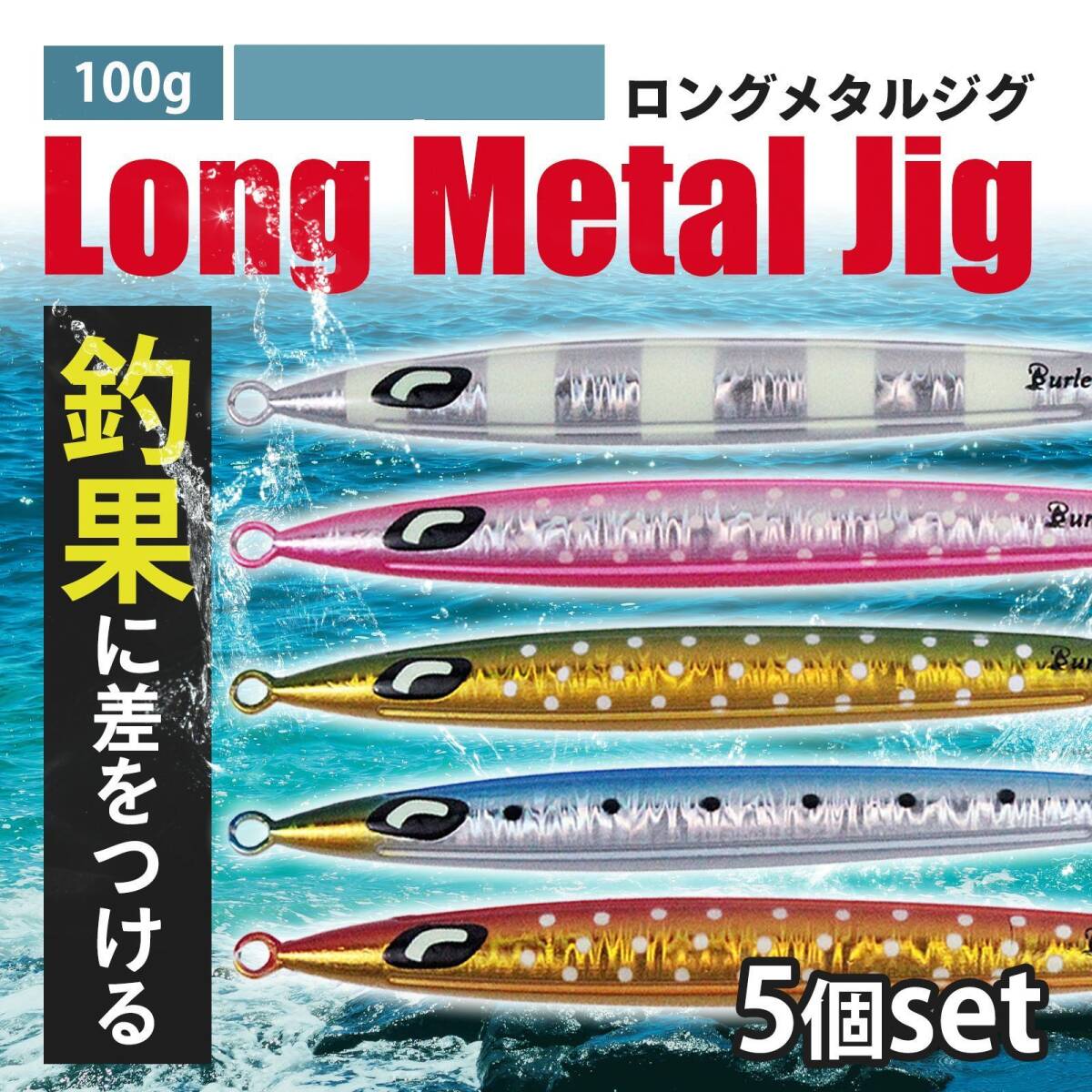 メタルジグ ロング 100g 釣り 魚 ルアー マグロ レーザー ジグ 銛 コーティング 3D ジグ 青物 深海 タコ釣り シーバス 5個 セット