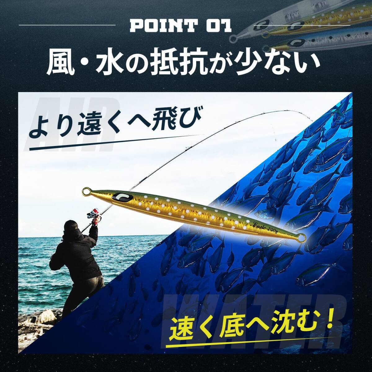 この夜光効果付きロングメタルジグは、深海釣りやロングキャストに最適なフィッシングジグです。マグロ、カツオ、ブリ、ヒラマサなどの大型魚をターゲットに。シーバスやヒラメ、タコ釣りにも対応するメタルジグルアーセットです。