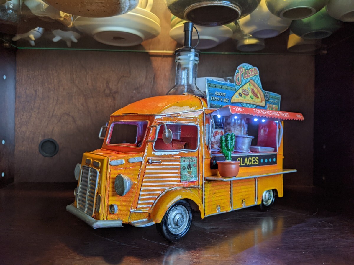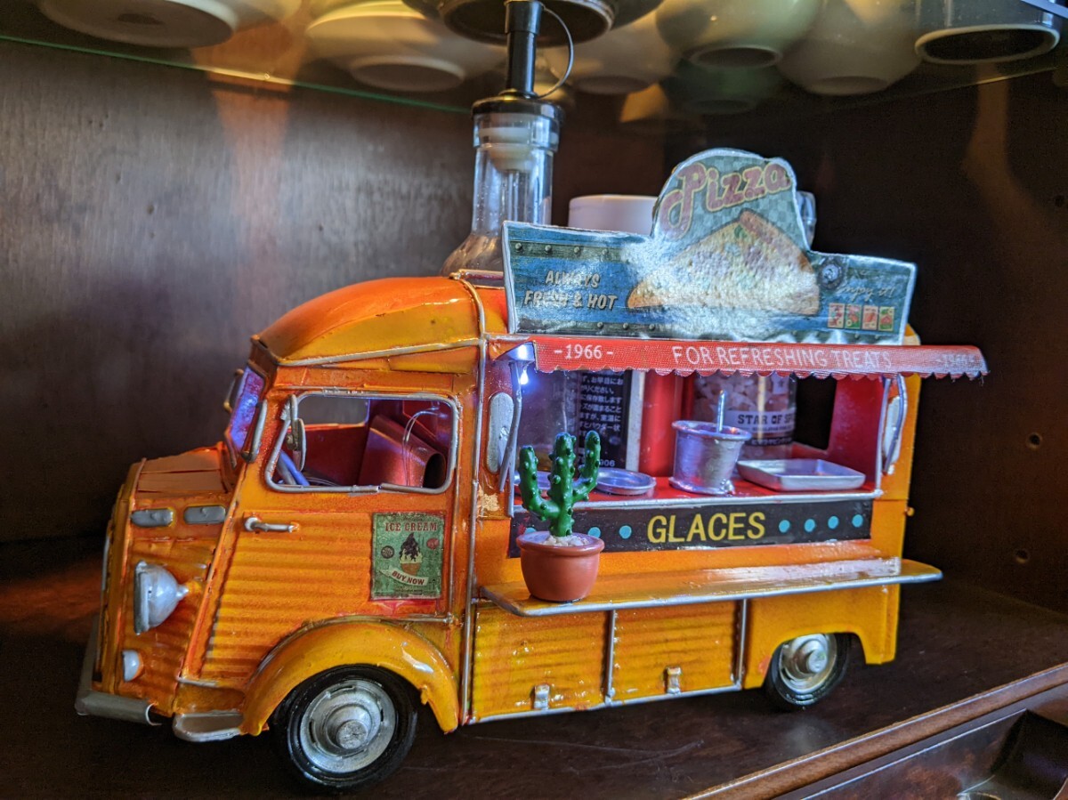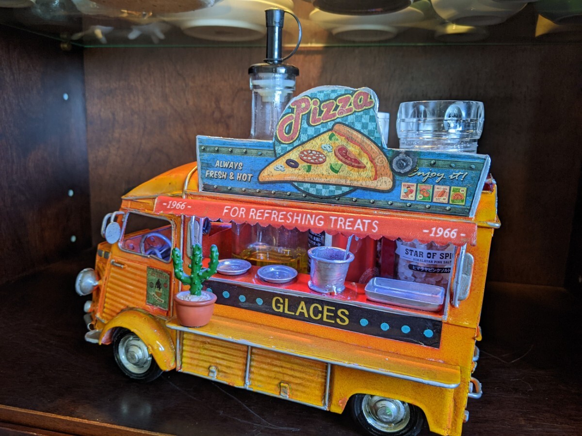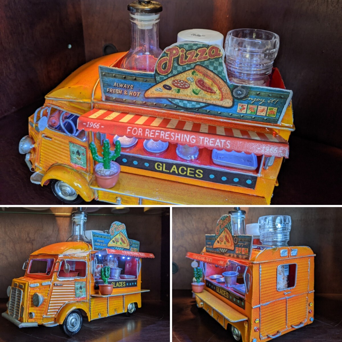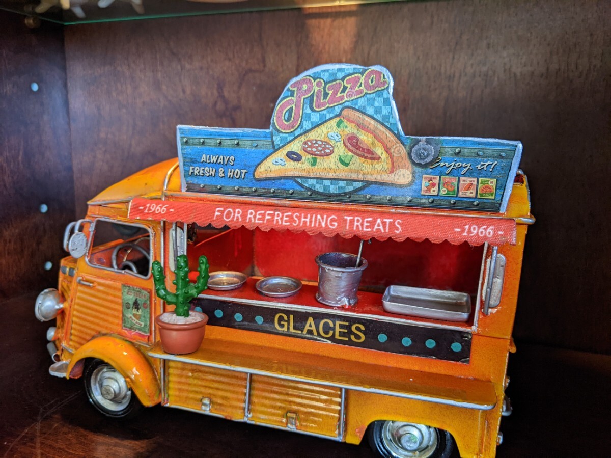 ■サイドオーニング等が装着されリアルに演出された、ケータリングカーの #PIZZAショップ 仕様で。