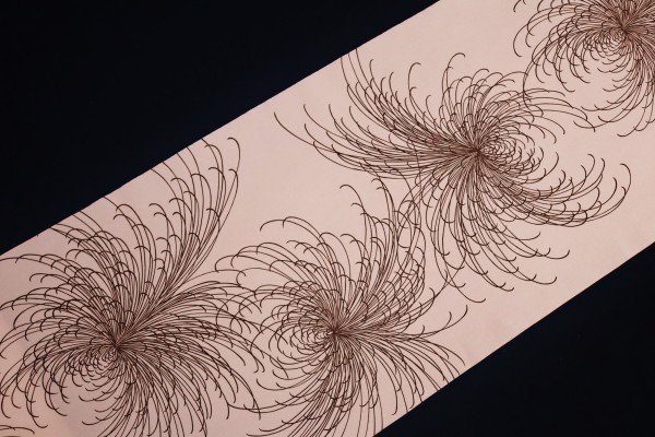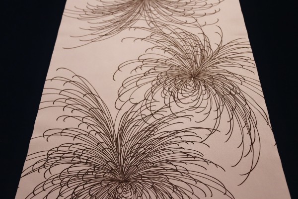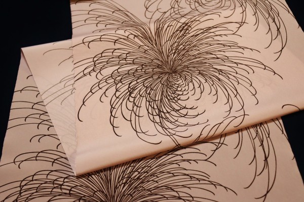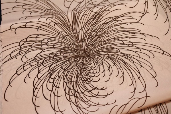 | 【京わぎれ】東レ シルック デュエット 長襦袢はぎれ 線菊柄 極薄小豆色系 替え袖用 少難品 2.2m | ||||