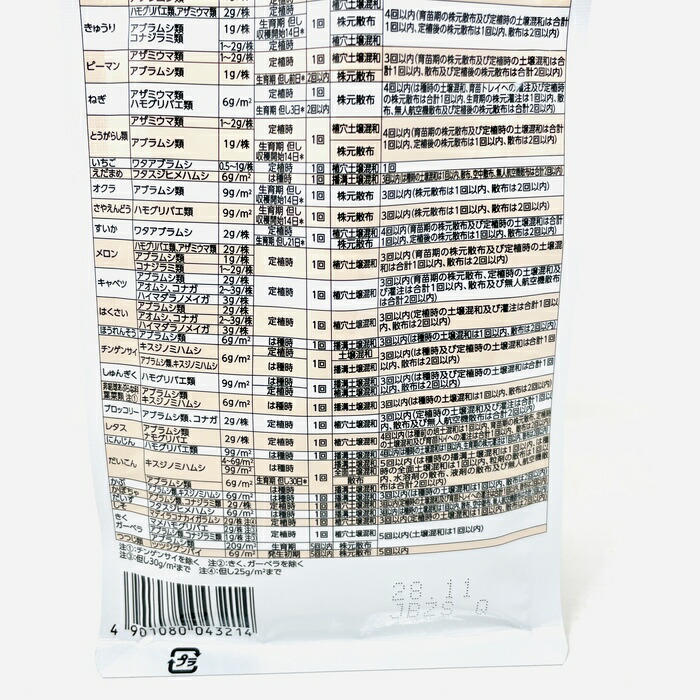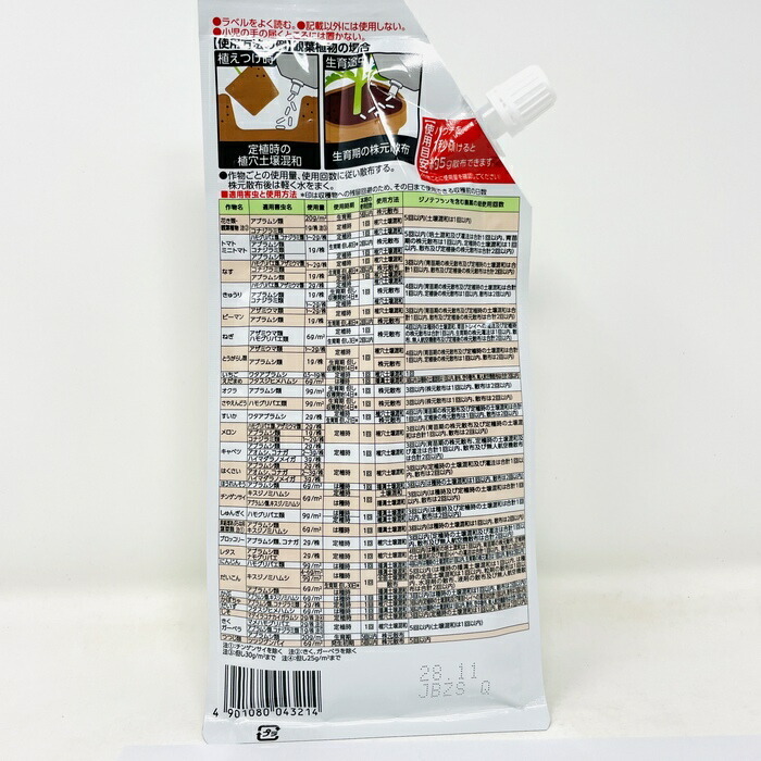 ※とくに適用作物群に属する作物又はその新品種に本剤をはじめて使用する場合は、使用者の責任において事前に薬害の有無を十分確認してから使用する。