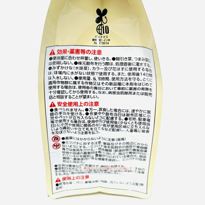 ※ミツバチ等を放飼中の施設や果樹園等では使用をさける。