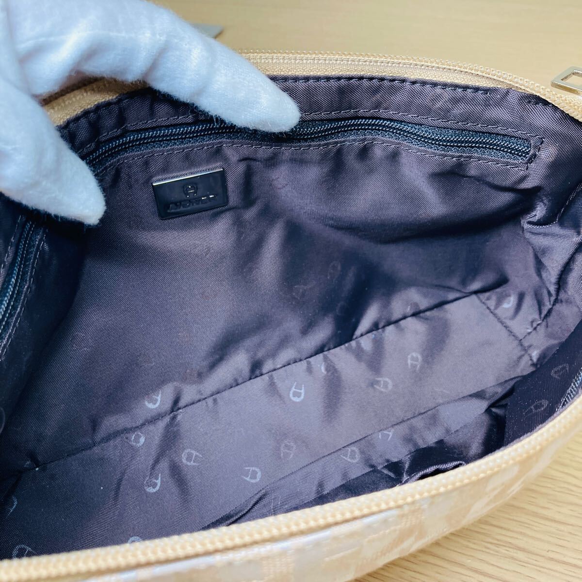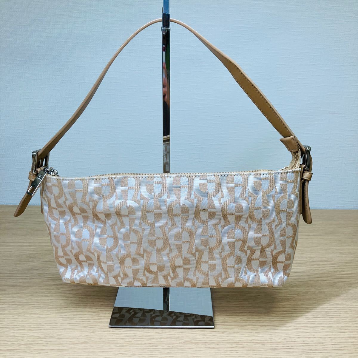 | O24081 AIGNER アイグナー ワンハンドルミニバッグ ハンドバッグ モノグラム ベージュ アクセポーチ | ||