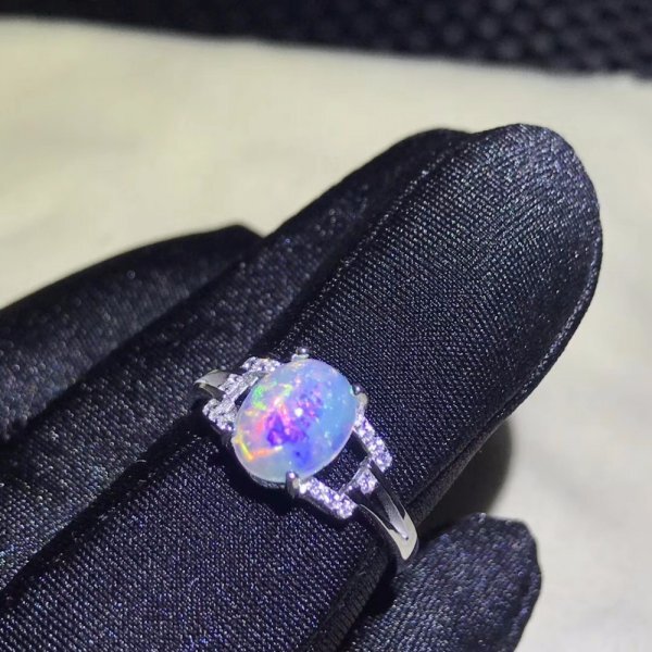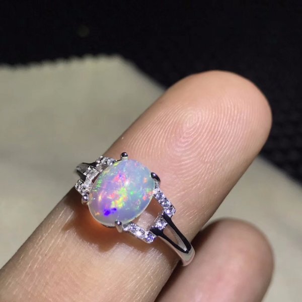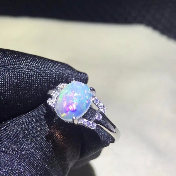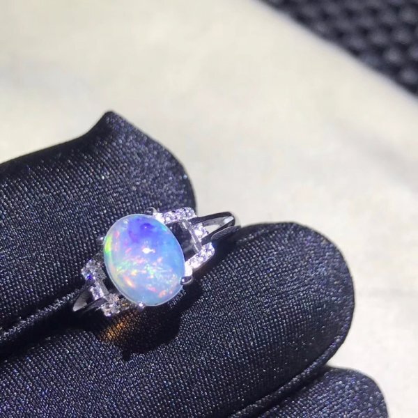 天然オパール レディース リング、7×9mm、ファイアカラーチェンジ、シルバー925、