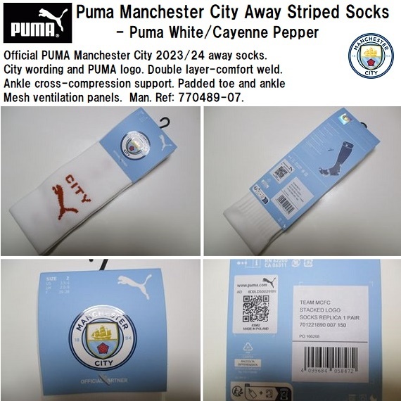 | ★必ず当方の自己紹介・商品説明をお読み頂き、ご理解頂いた上で入札ください。 ★商品到着後24時間以内に"受取通知"を実行出来る方のみ入札ください。 U.K.(イギリス)より直輸入!! ◎出品しているすべての商品は手元(宮崎自社倉庫)に有ります。 ◎1枚目の画像は版権元である仕入先より許可を受け転載使用、2枚目が実物の画像となります。 日本国内では入手困難。 他人が持っていない珍しいグッズが欲しい方におすすめ!! イングランド・プレミアリーグの強豪"マンチェスター・シティ"の2023-2024 アウェイソックス。 フロントに"CITY"と"パワーキャット"をデザイン。 ●品名:Puma Manchester City Away socks ●カラー:White/Cayenne Pepper ホワイト/カイエンペッパー *文面では表現しづらいので画像で判断下さい。 / ●品番:757114-01 ●素材:ポリアラミド73%、ポリエステル16%、コットン8%、エラスチン3% ●サイズ:2 FR=35-38/UK=2.5-5/US=3.5-6 (約21.5cm-24.0cm) ●生産国:ポーランド ●新品未使用・台紙付き ■保証に関して■ ☆初期不良(商品到着後3日以内)のみ対応させて頂きます。商品到着後、速やかに検品下さい。 ☆商品は入荷時と発送時に開封し検品しております。 ■お願い■ 必ず、当方の自己紹介を読んでから入札下さい。 臨時の出荷可能日・不可能日やお取引きの決め事を記載しています。 ★商品説明・注意事項・発送詳細・支払方法をご理解頂いた上で入札下さい。 | ||