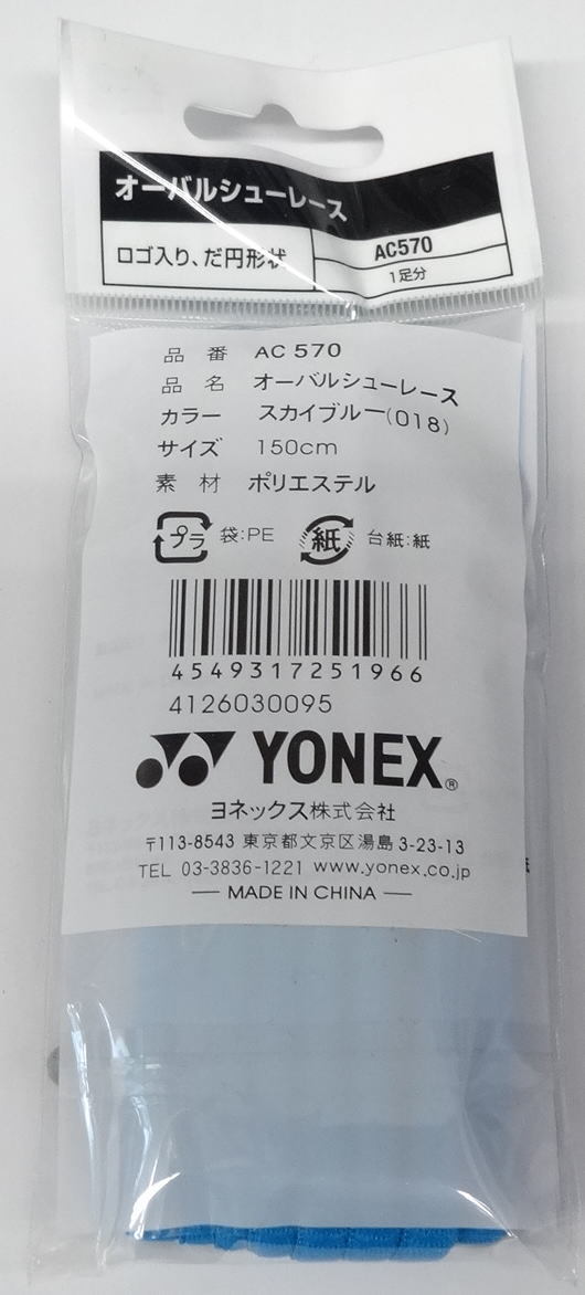☆ヨネックス オーバルシューレース【AC570】 スカイブルー・150cm