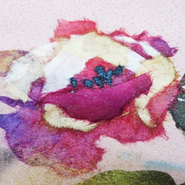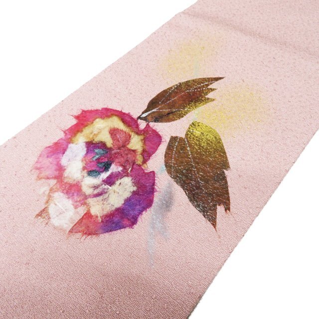 サイズ 366cm x 30.5cm 素材 正絹 商品ランク B ●お色 御所染色 多色 金 お柄部分を和紙のちぎり絵で表現した、個性的な名古屋帯です。 ふんわりと和紙の風合いが柔らかな雰囲気を醸し出しています。 一味違う和装のお洒落に、是非取り入れてみてください。 使用感の少ない、美しいお品物です。 一部商品は実店舗・他サイトでも並行して販売しておりますので売り切れの際はご了承ください。 その他多数販売中 n | ||||||