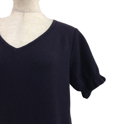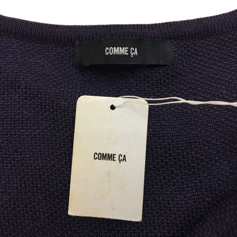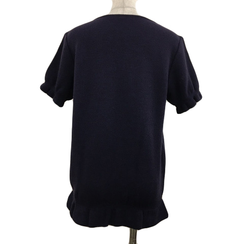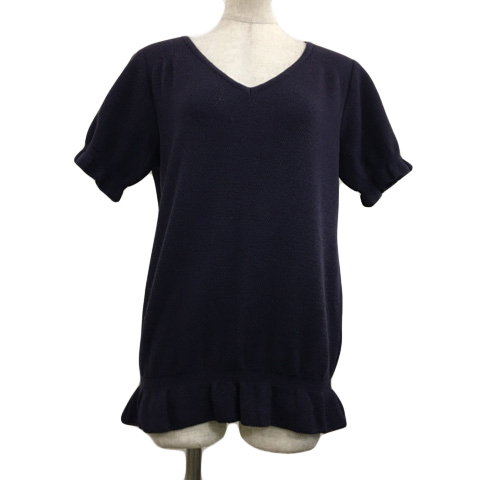 未使用品 コムサ COMME CA セーター ニット プルオーバー Vネック 無地 ウール フリル 半袖 15 紫 パープル レディース