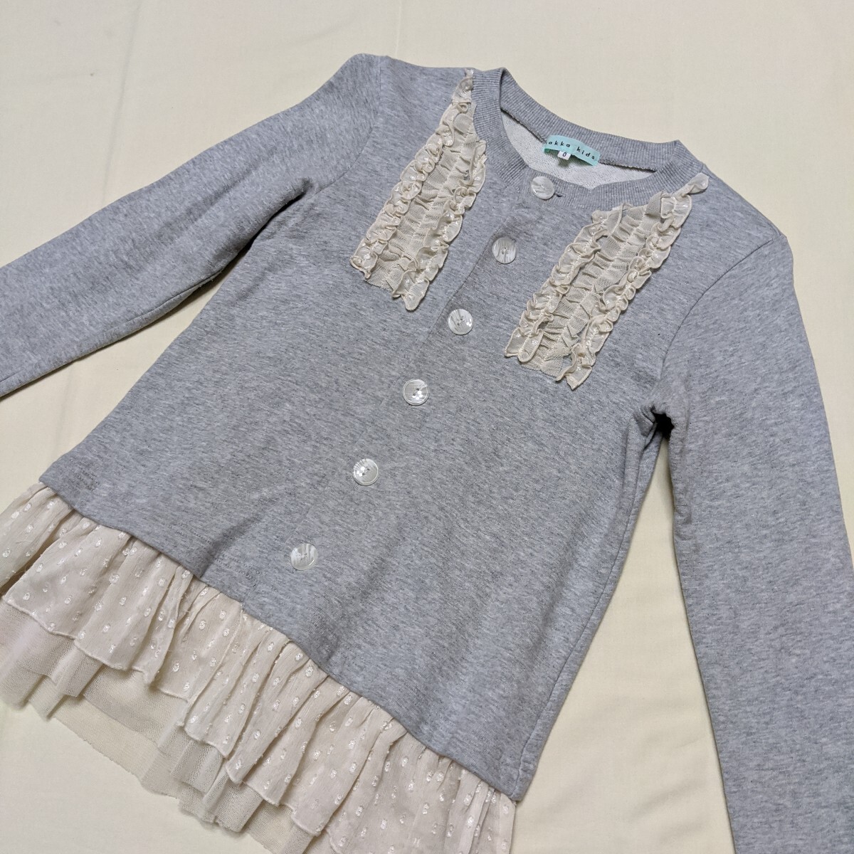 フリルやレースの飾りが可愛らしいカーディガンです。