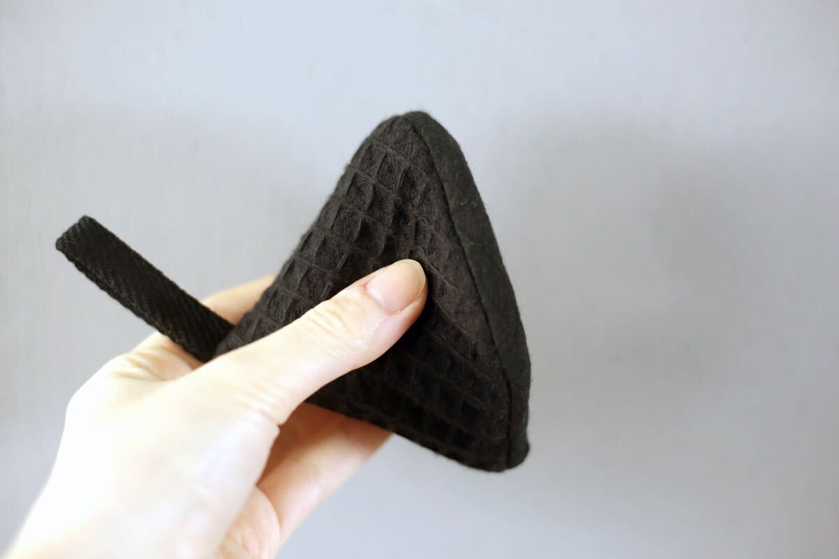手のひらサイズでころんとした三角形が鍋の蓋や取っ手にピッタリはまります。