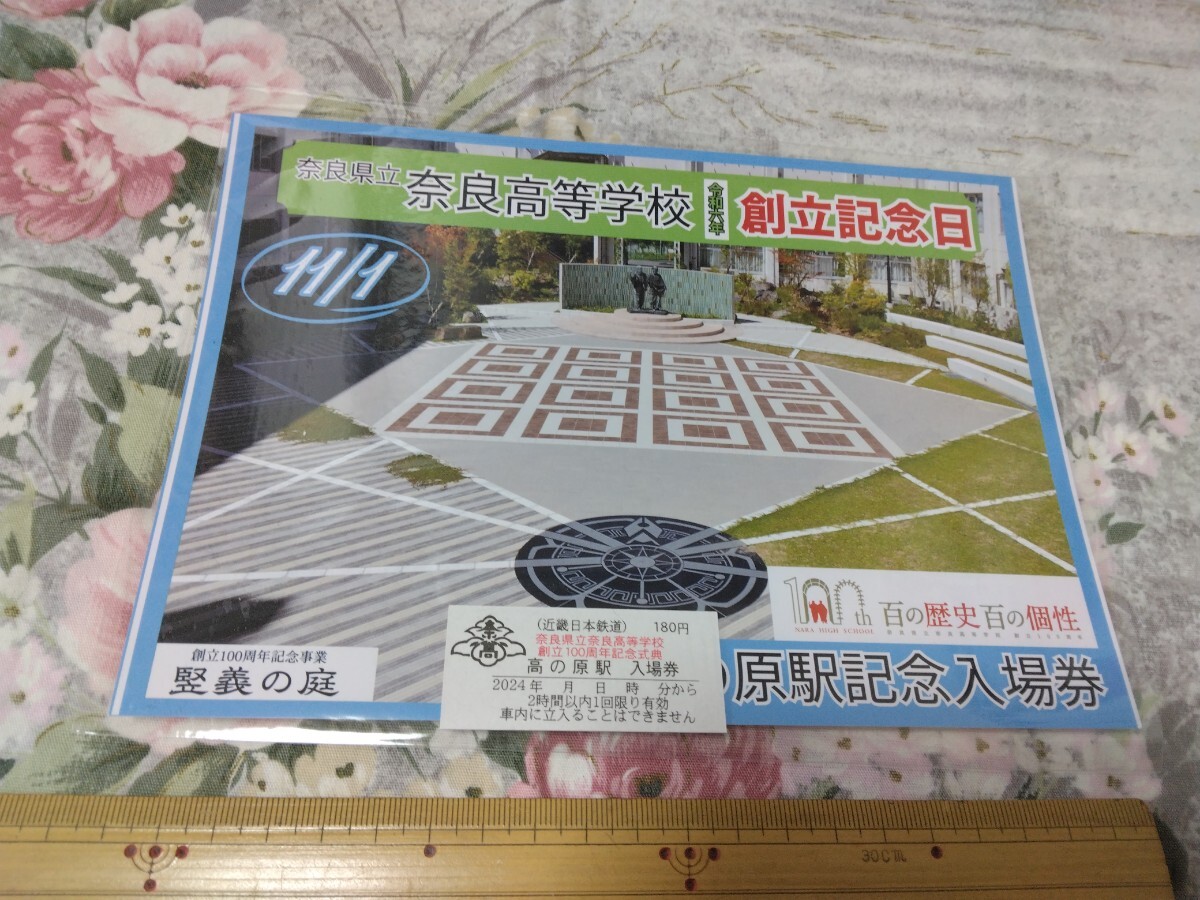 奈良県立奈良高等学校 「創立記念日」記念入場券 近鉄 高の原駅です。