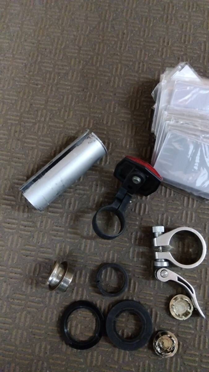 シートクランプ、ヘッドのデカいネジ、プラパーツなどです。発送はゆうパックお手軽版にて行います。