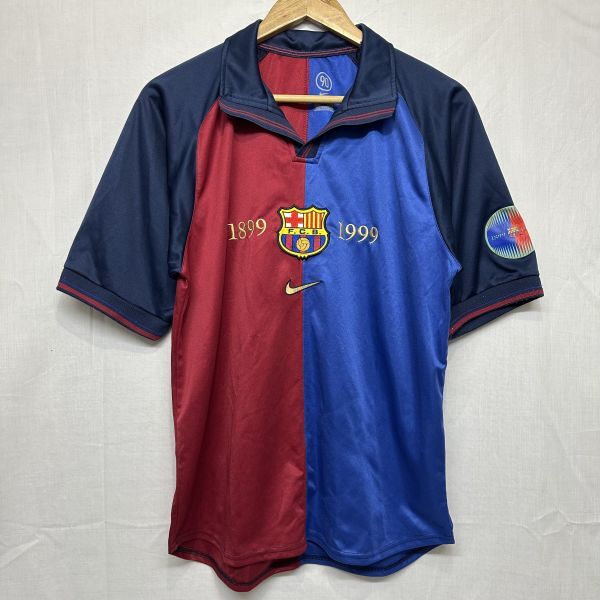 〇NIKE ナイキ FC バルセロナ 100周年記念 ショート スリーブ 半袖 プラ クティス シャツ ユニフォーム サッカー フット サル ボール