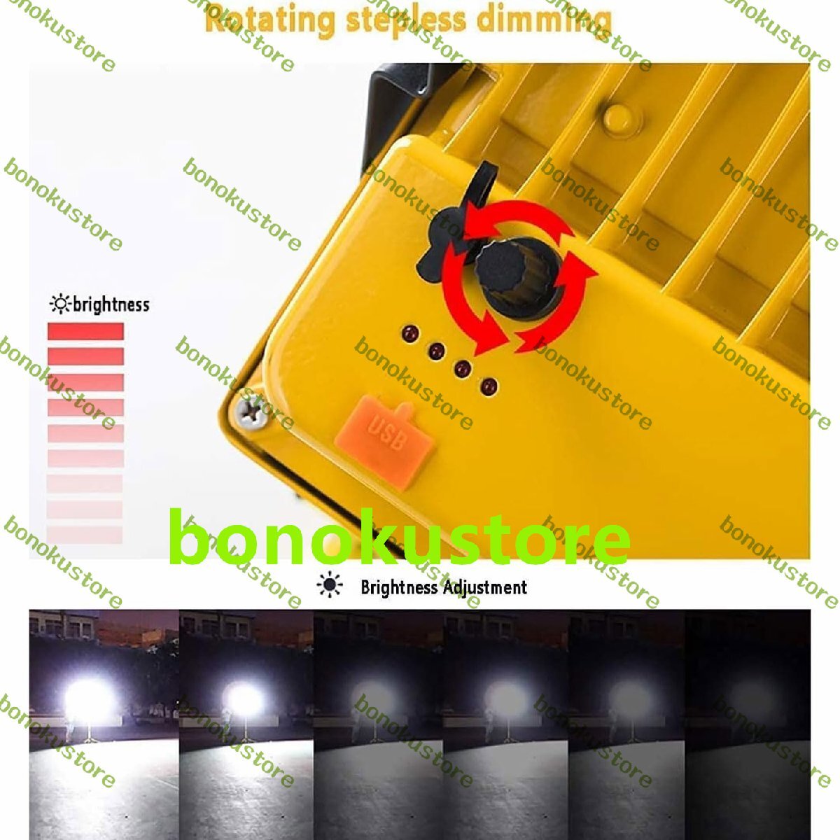 600W LED充電式ワークライト、6段階明るさ防水屋外非常灯、リモコン付き、10400mAhバッテリー内蔵、ポータブル屋外投光器