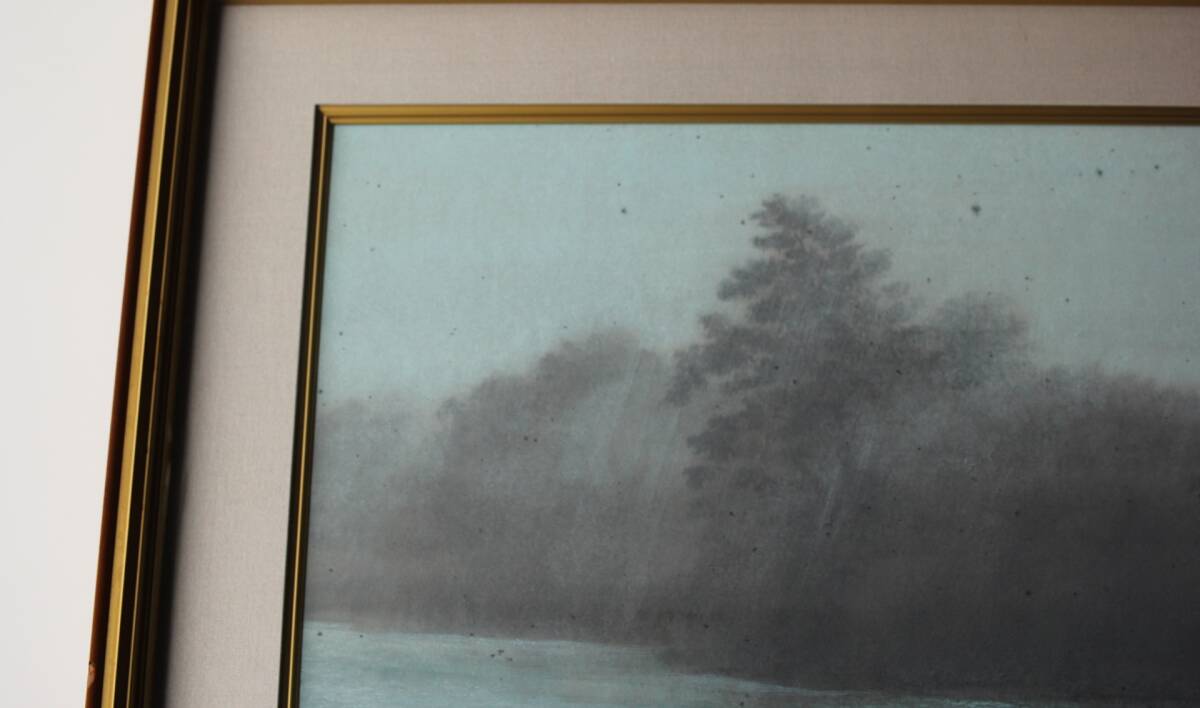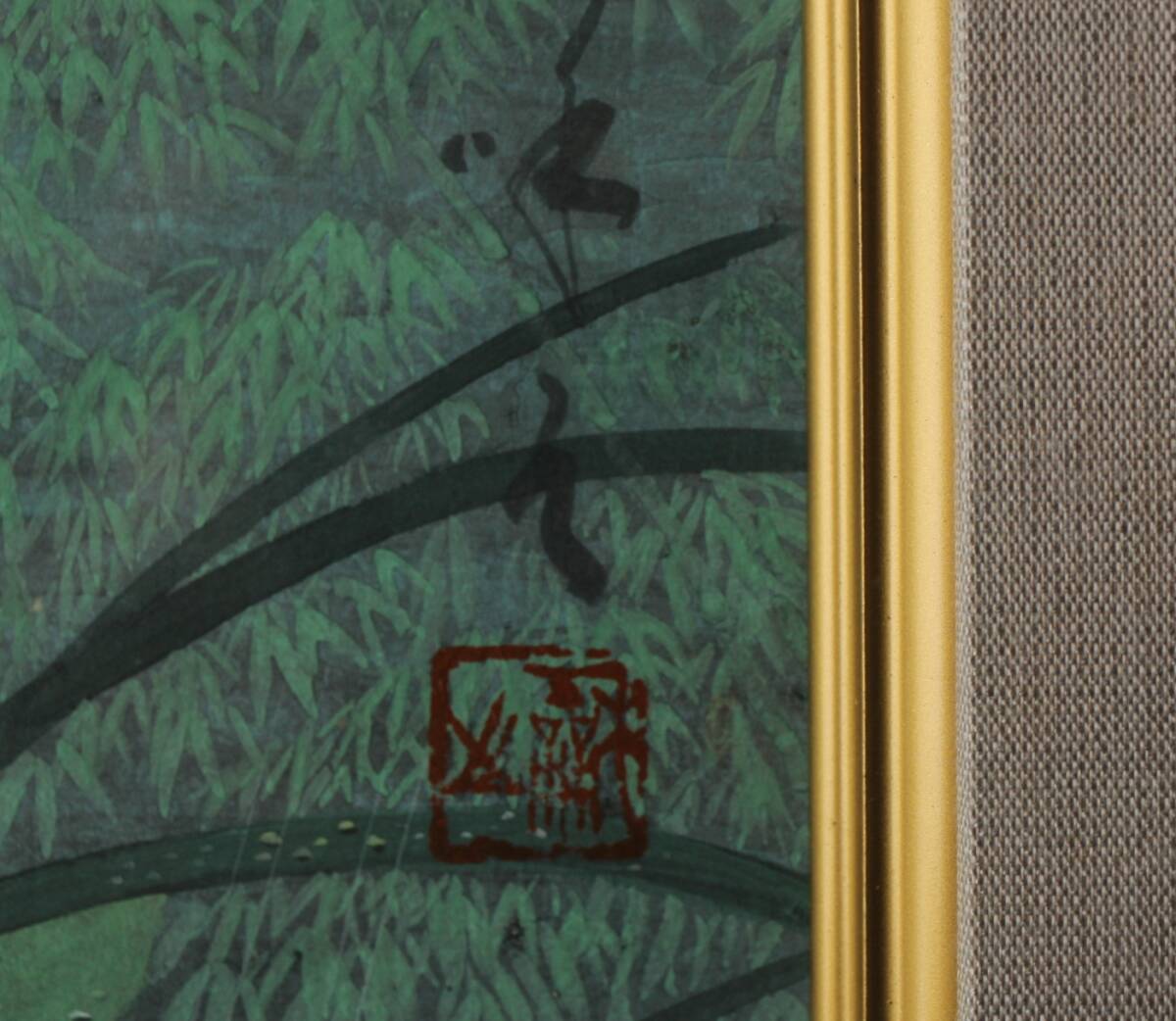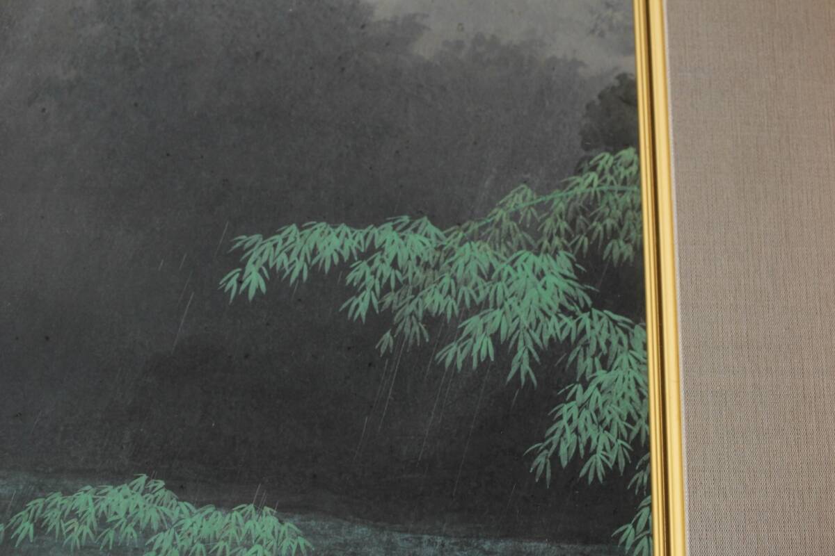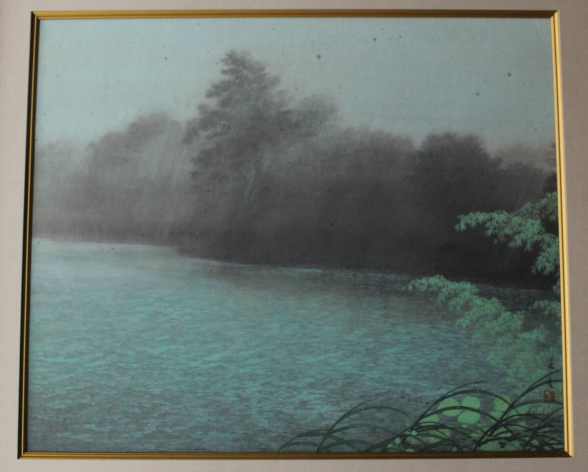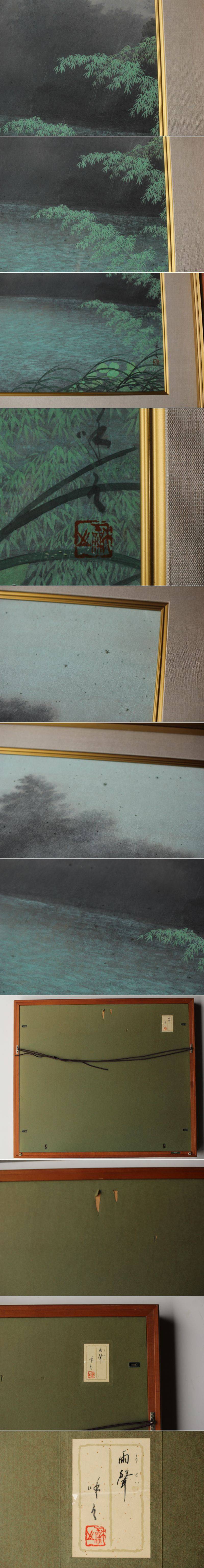 真作【の】二川和之 【雨聲】 20号 日本画額装 共シール