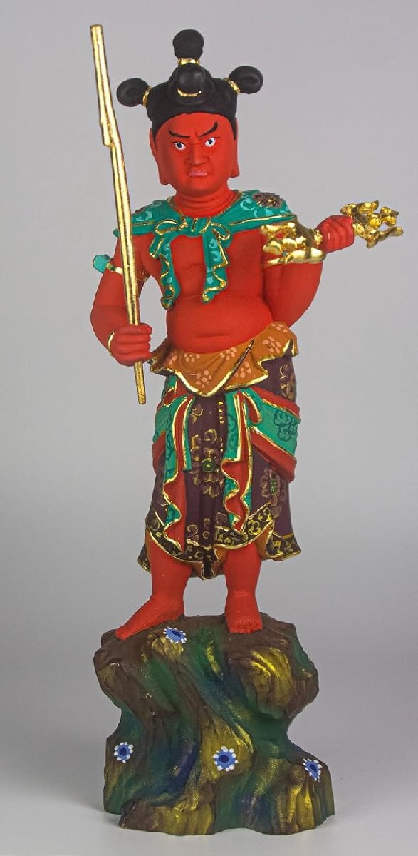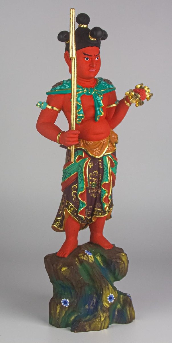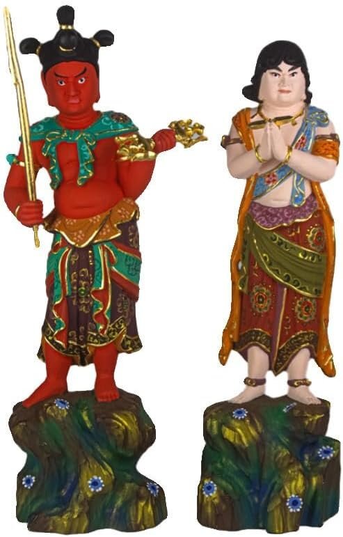 仏像 制咤迦童子 矜羯羅童子 立像 桧木彩色 こんがら せいたか 不動明王脇侍 木彫仏像 木彫り 木製 (Size : 13.5cm)