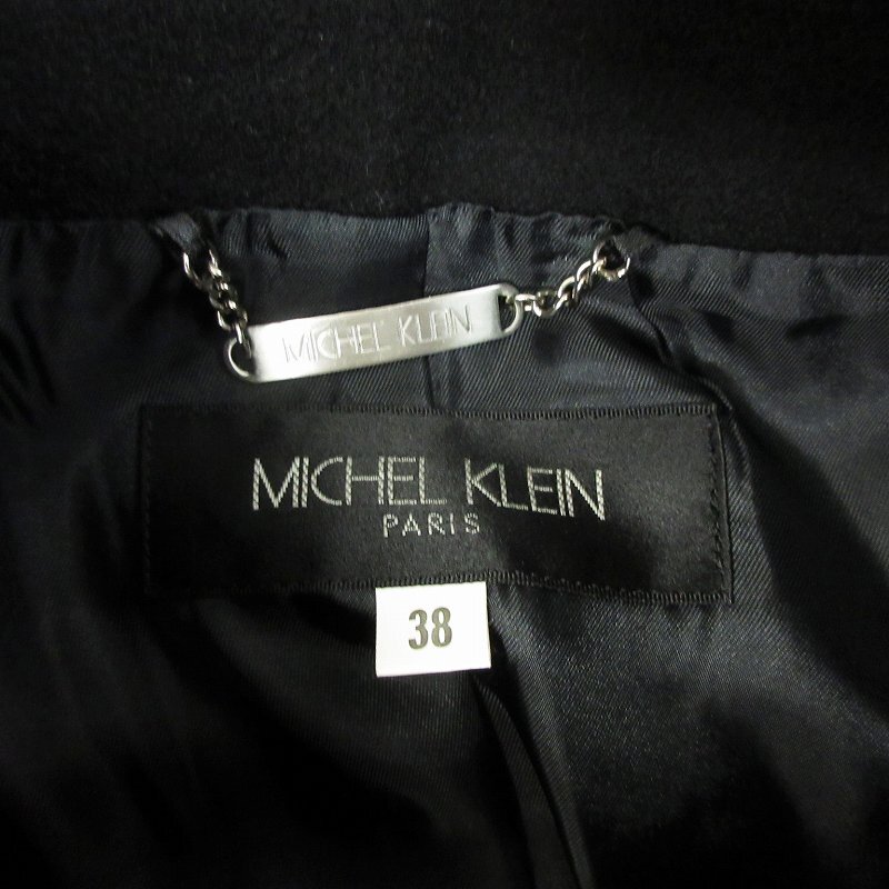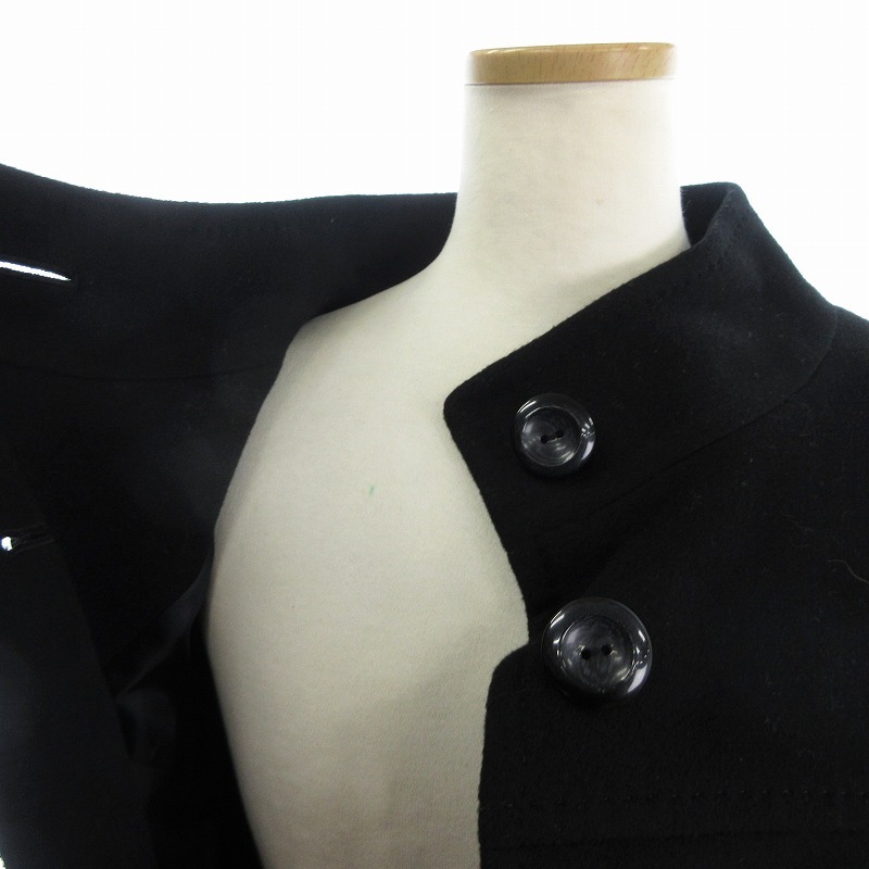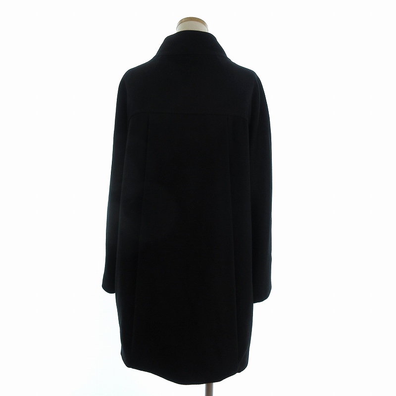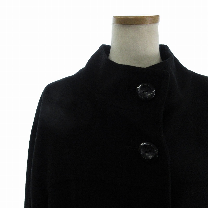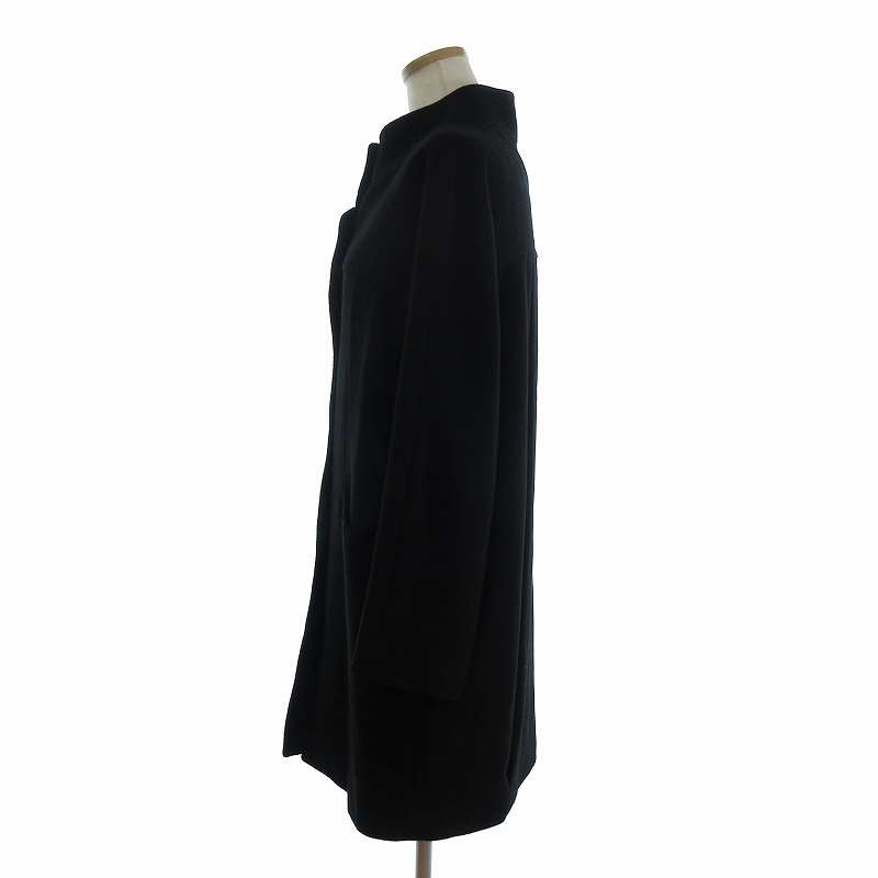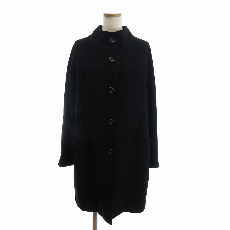 ミッシェルクラン MICHEL KLEIN ウールコート ロング丈 カシミヤ混 ハイネック 無地 フロントボタン 黒 ブラック 38 レディース