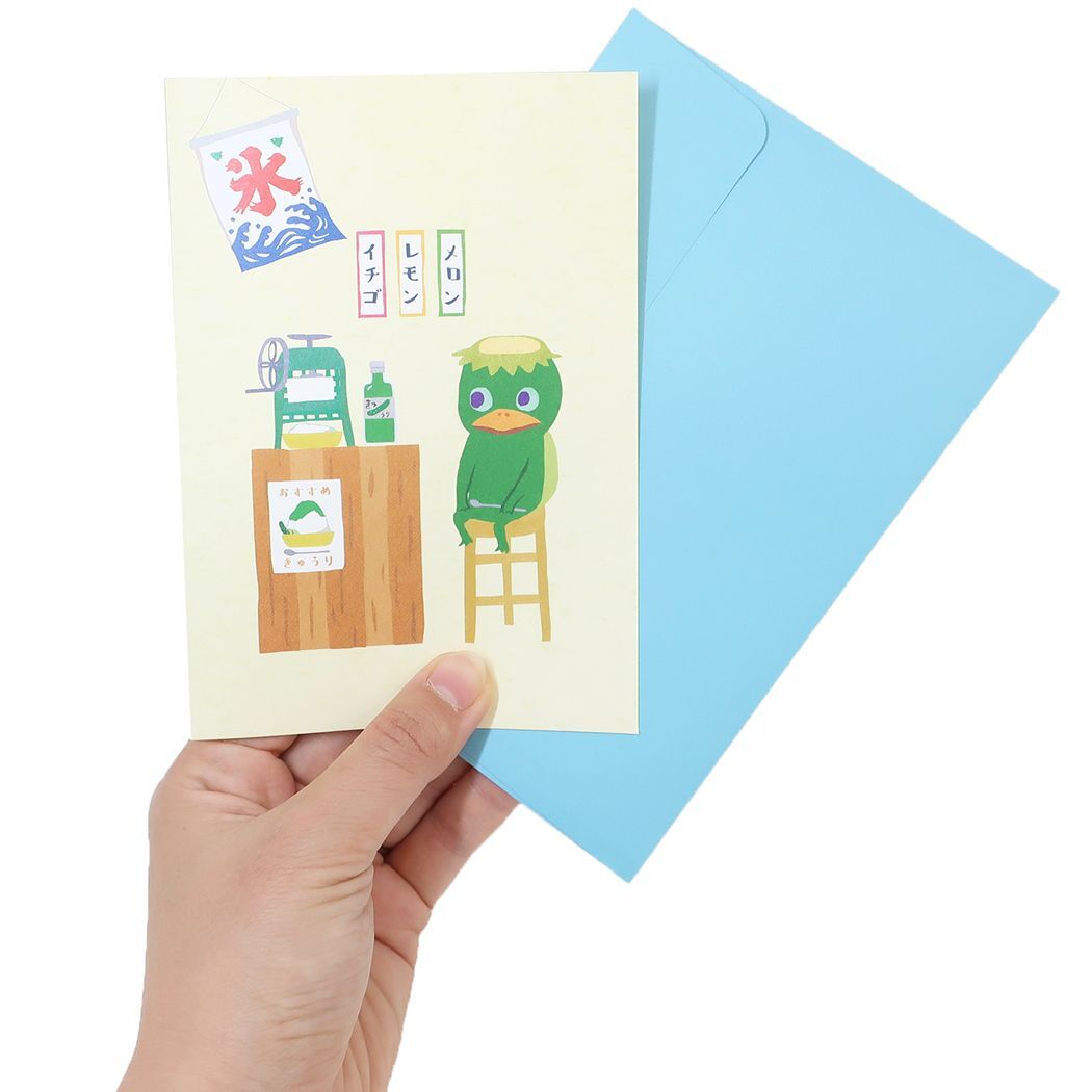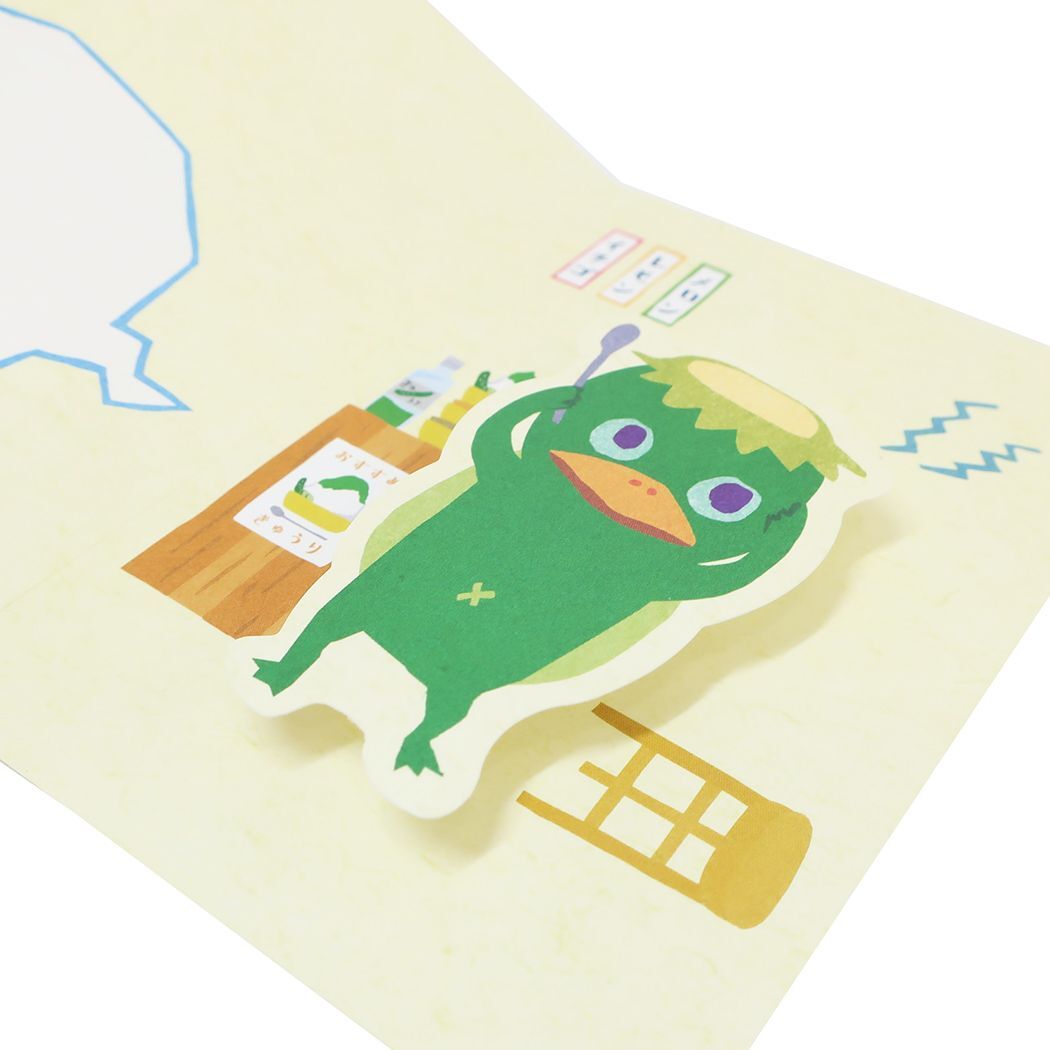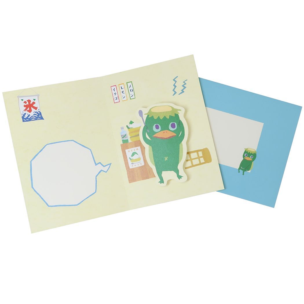 化け物と小物が合わさったキュートなばけこものシリーズ ちょっと怪しいけどかわいくて楽しい妖怪モチーフの[ばけこもの]シリーズこちらは贈ってももらっても楽しいグリーティングカードかき氷食べ過ぎな河童が「キーン!」とスプリングで動くカードで楽しい夏をお届けします専用封筒付きで、カードにメッセージが書き込めますかわいいCARDいろいろあるのでお気に入りを揃えてください。封筒サイズ:165x115mm(定型内)