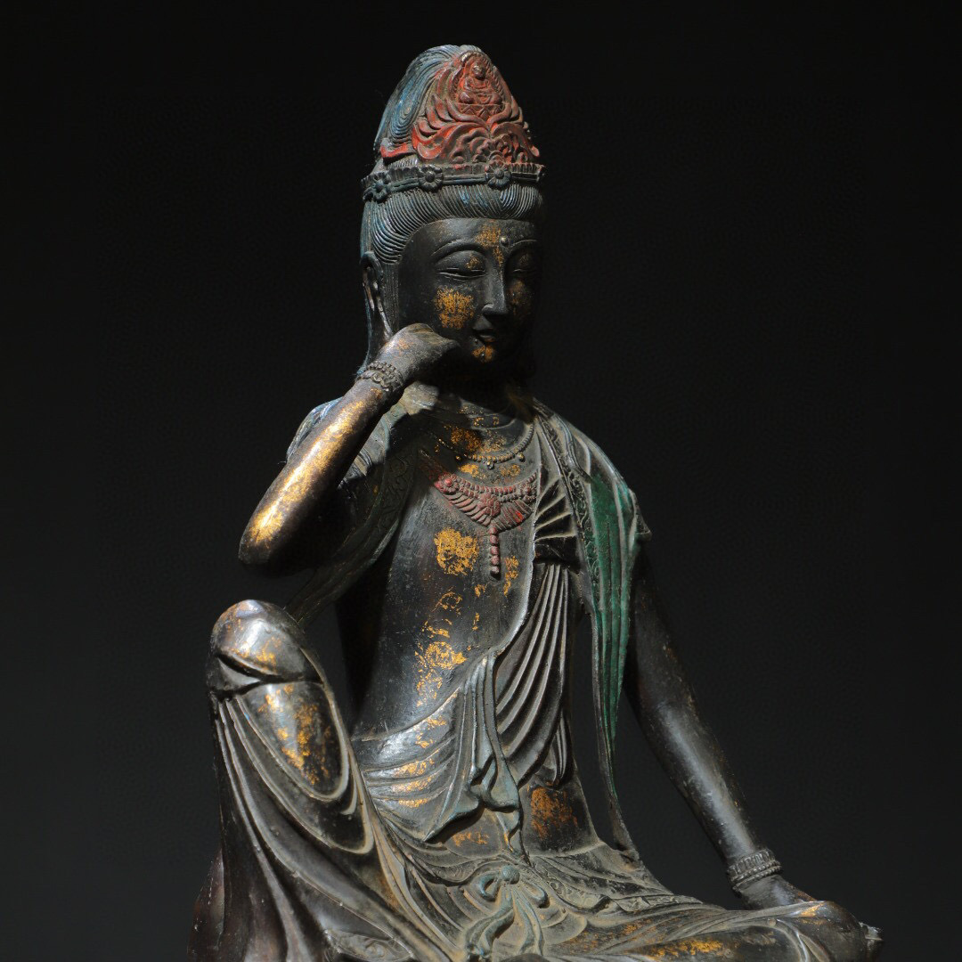 ▽鴻▽ 銅製 拓金 自在觀音像 置物 古賞物 中国古玩 中国古美術