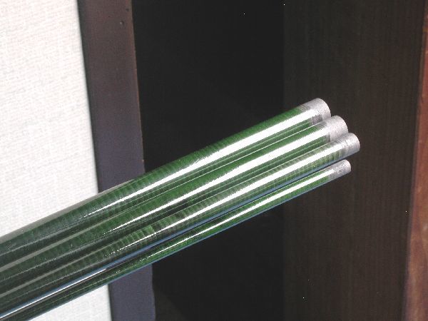 6フィート6インチ。dark green IM-6 medium-fast action バット最大径 7.55mm 重量21g 仕舞寸法54cm。画像には写っていませんが、クロスバッグ付。クロスバッグはとりあえず付けてあるといった程度のもので、切れ、ほつれ、破れなどがある場合があります。ブランクの色はややオリーブっぽい深緑。新品ですが、運搬などに伴う微細な擦れや傷はあります。また、検品のせいでしょうか、フェルール部のオスの部分に、薄い擦れがあります。各ピースの下端は着色塗装されていませんが、飾り巻きを施せば隠せます。また、トップとバットは、それぞれトップガイドとリールシートを取り付けたときに他のピースと同じ長さにそろうよう、わずかに短か目となっています。