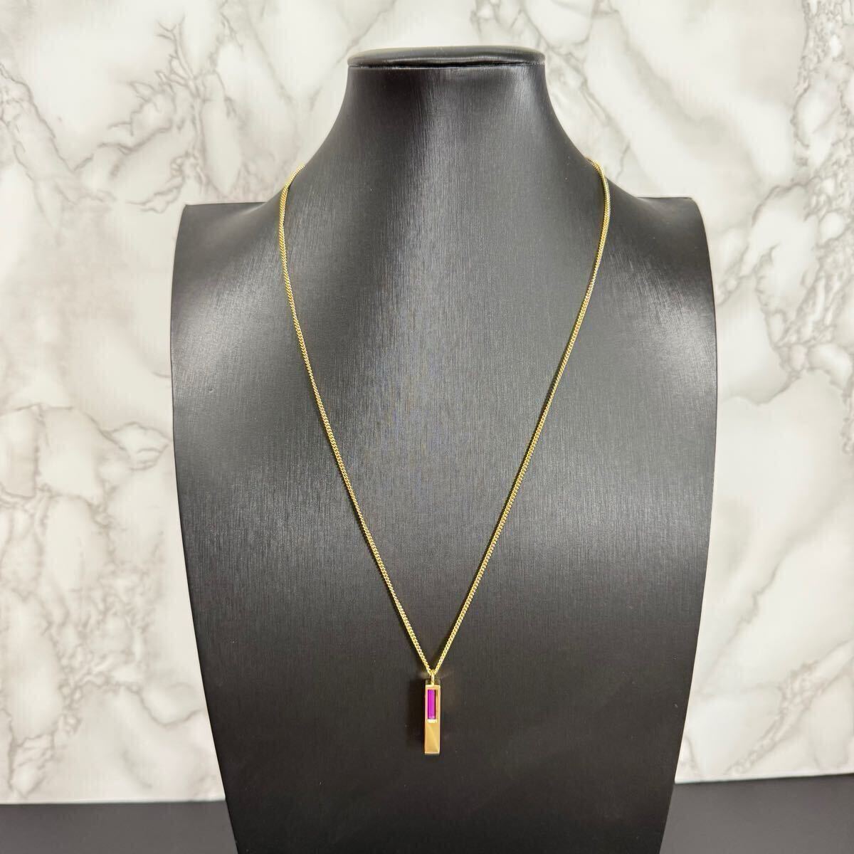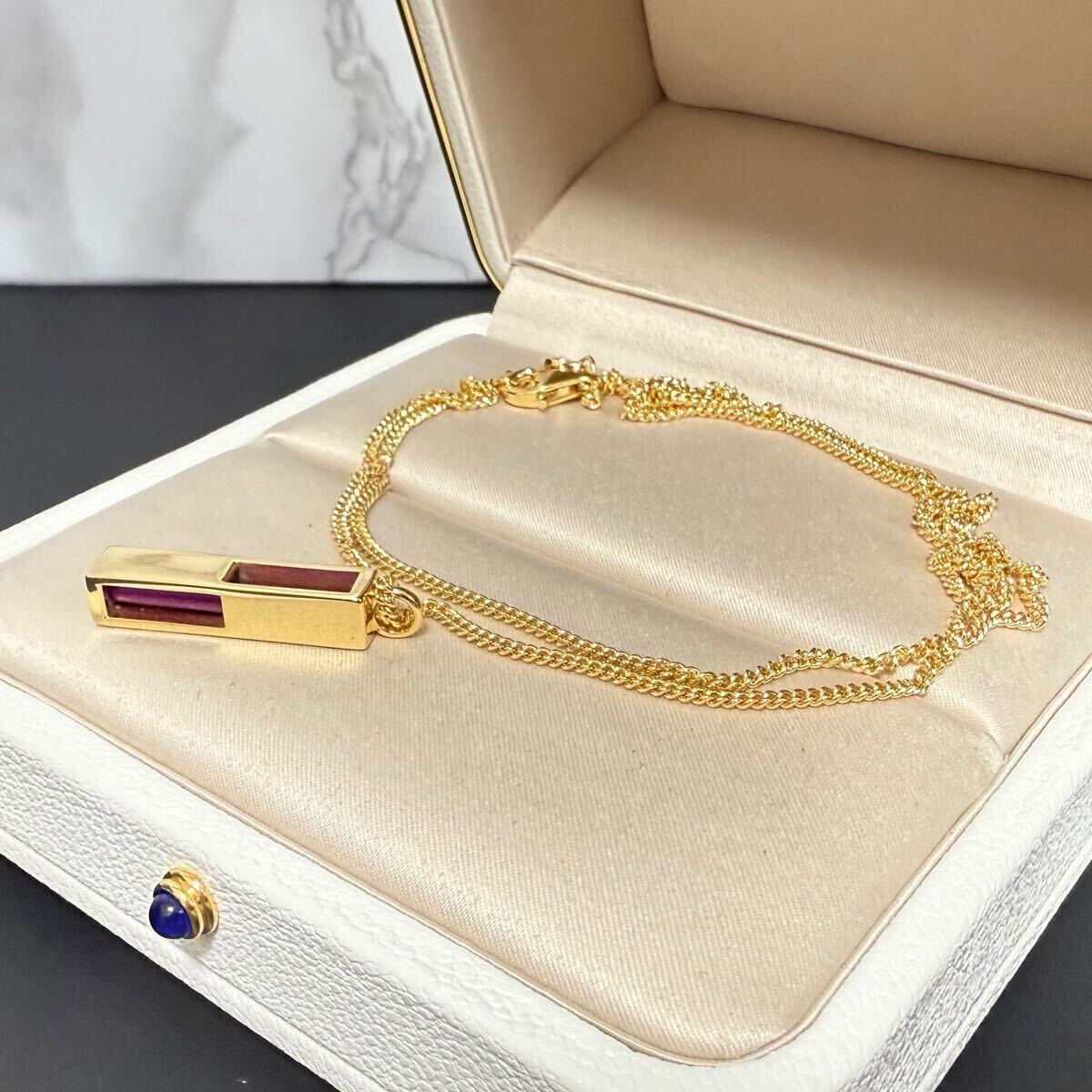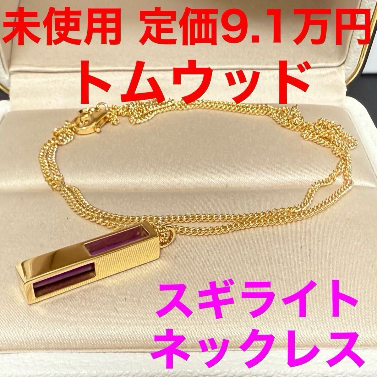 人気のトムウッドのユニセックスデザインのネックレスです。スギライトが映えるゴールド色のキューブペンダントがお洒落なモデルです。