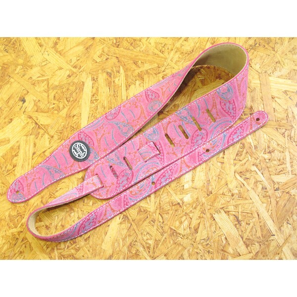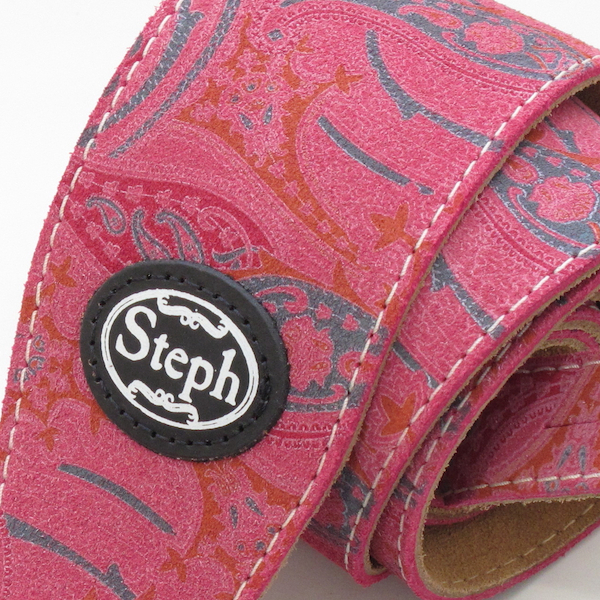 新品 Steph PAY-2205 フクシア スエード/ペイズリー ギターストラップ レザーストラップ