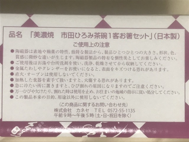 『市田ひろみ 美濃焼 和食器 (茶碗・お箸) セット』 黒 【日本製・外箱付】 です。